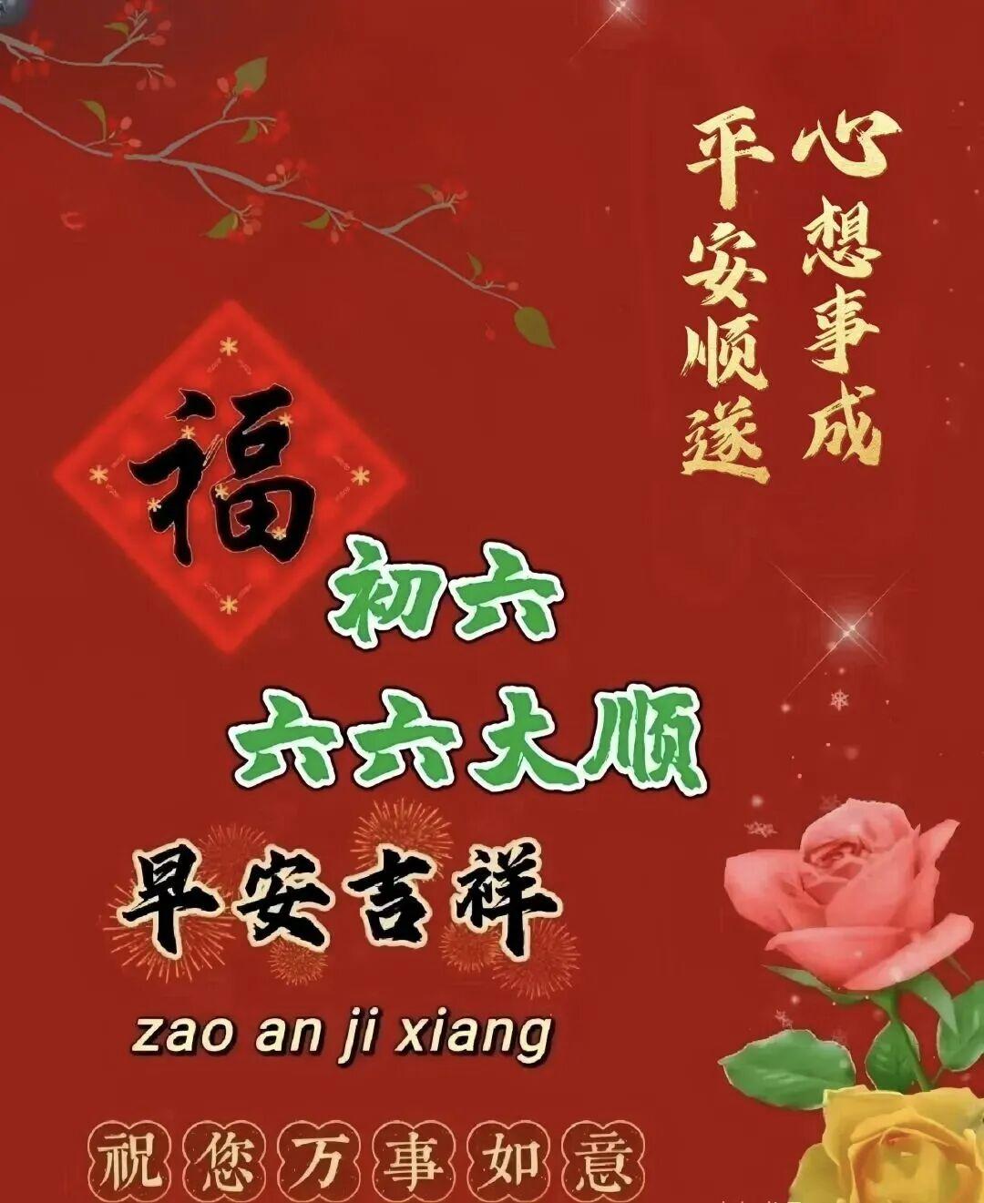 正月初六,六福齊聚:健康是根,平安是福,順心是樂,好運是喜,財運是實,圓滿是終。願你全收,新年大吉!