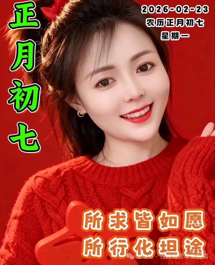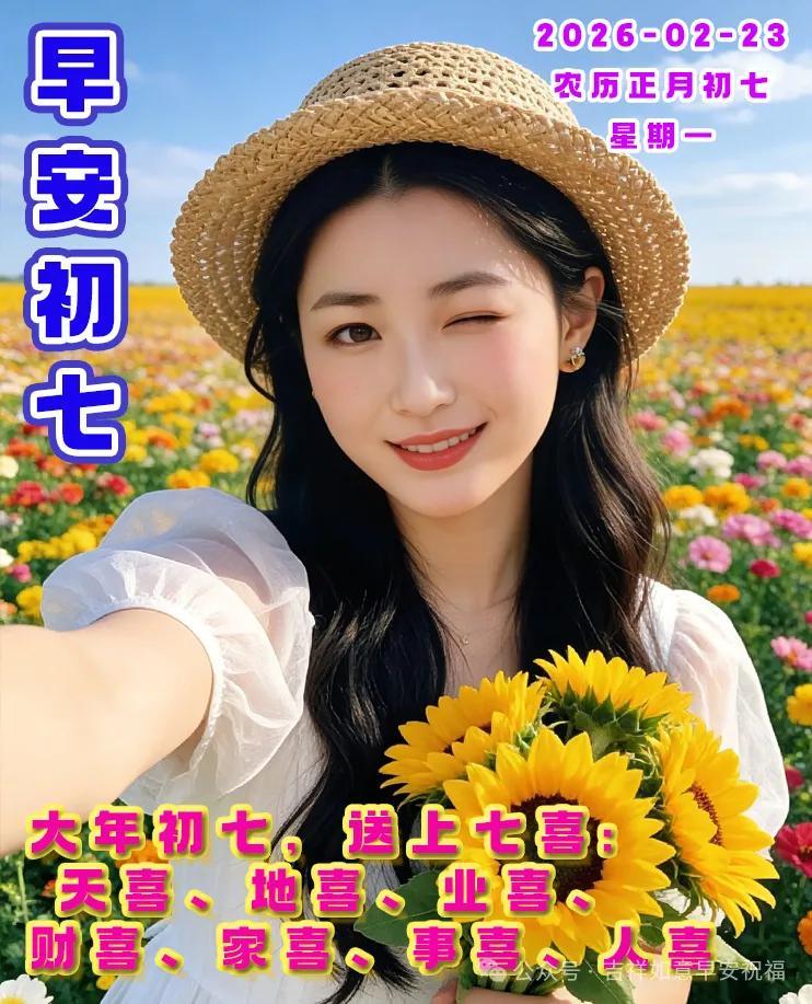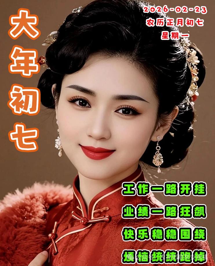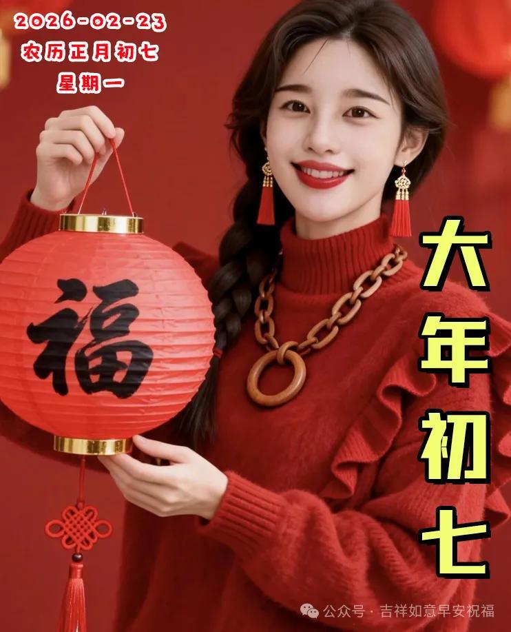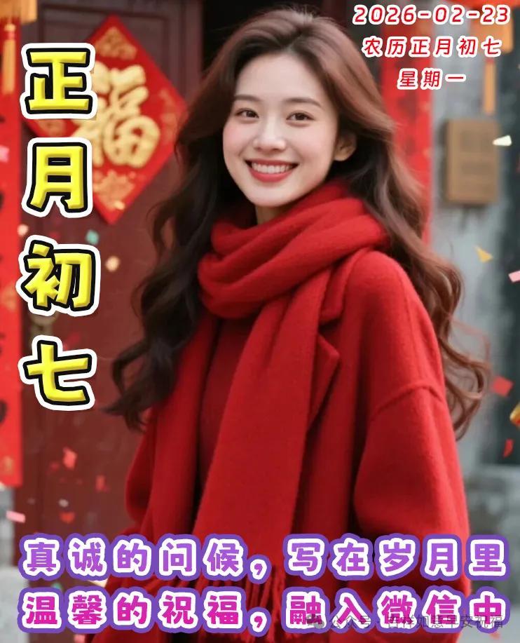 早上好,朋友們。今天是農曆大年初七,最暖的祝福贈予你,願你生活處處有喜期,萬事順遂有運期,吉星高照有福期,金銀滿倉有財期,總之一切都順期!正月初七,賀你歡喜!