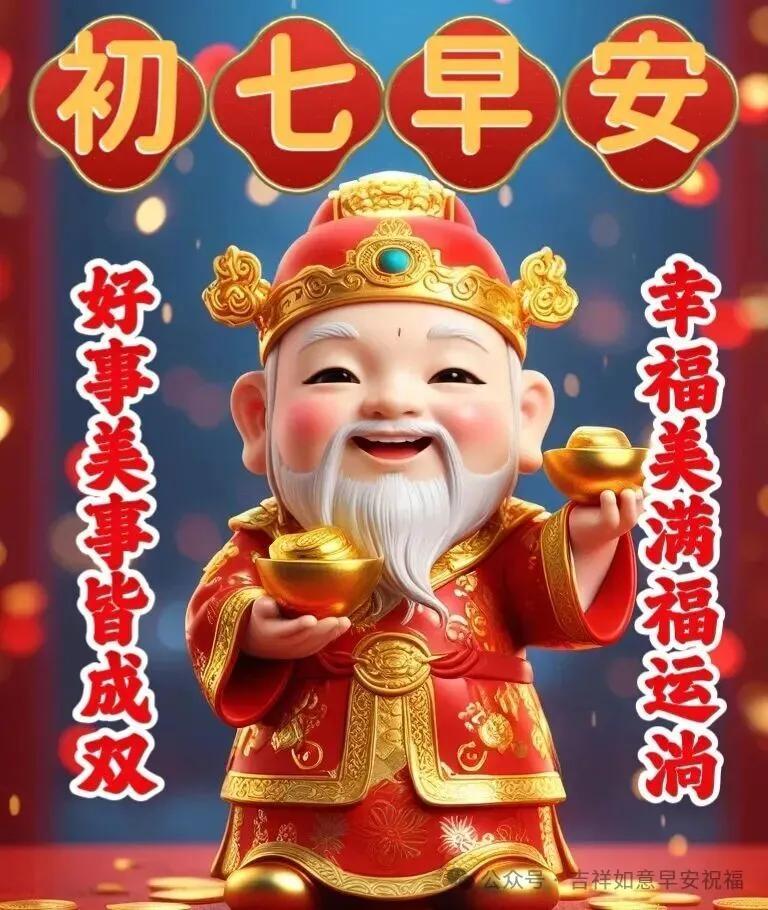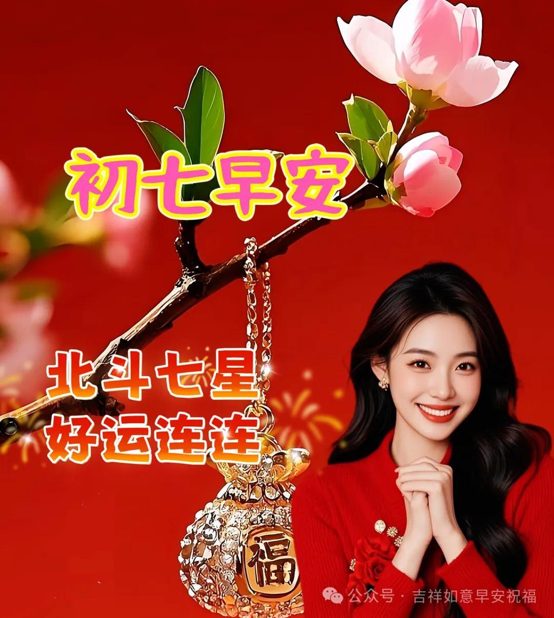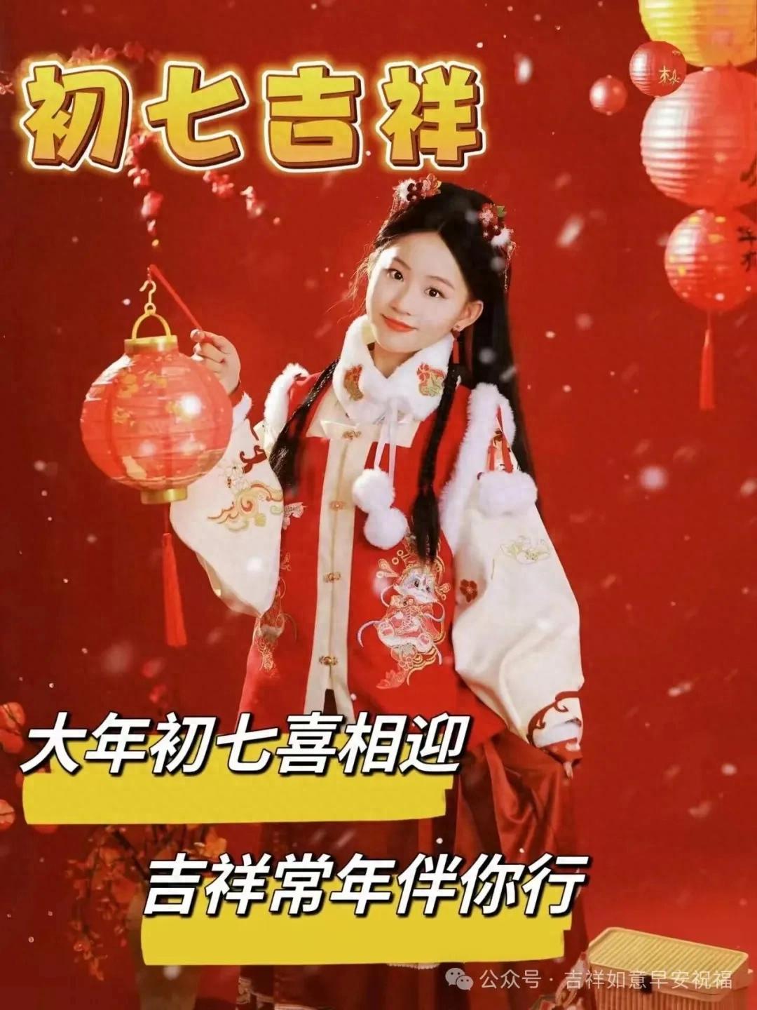 年初七,道安康,遇事樁樁順,日子節節揚,福運朝朝降,越活越鮮亮,家中聚金玉,案上積錢糧。馬年時時皆歡暢!