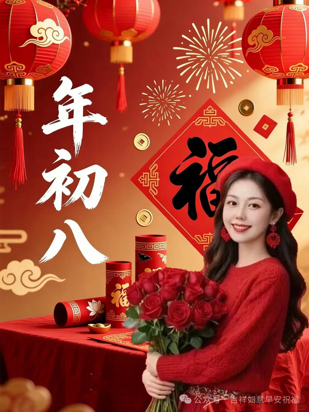 初八祝福迎新春,收穫滿事業興旺。金榜題名功名顯,鈔票紛紛財運旺。身體健康長壽福,家庭幸福萬事好。祝願朋友新年快樂,吉祥如意幸福繞❤️。