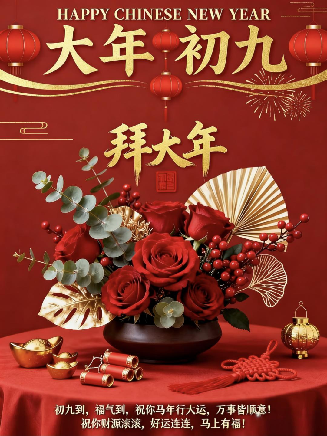 正月初九,天日納福。願您:愁事“九”霄雲外,好事“九”九不忘