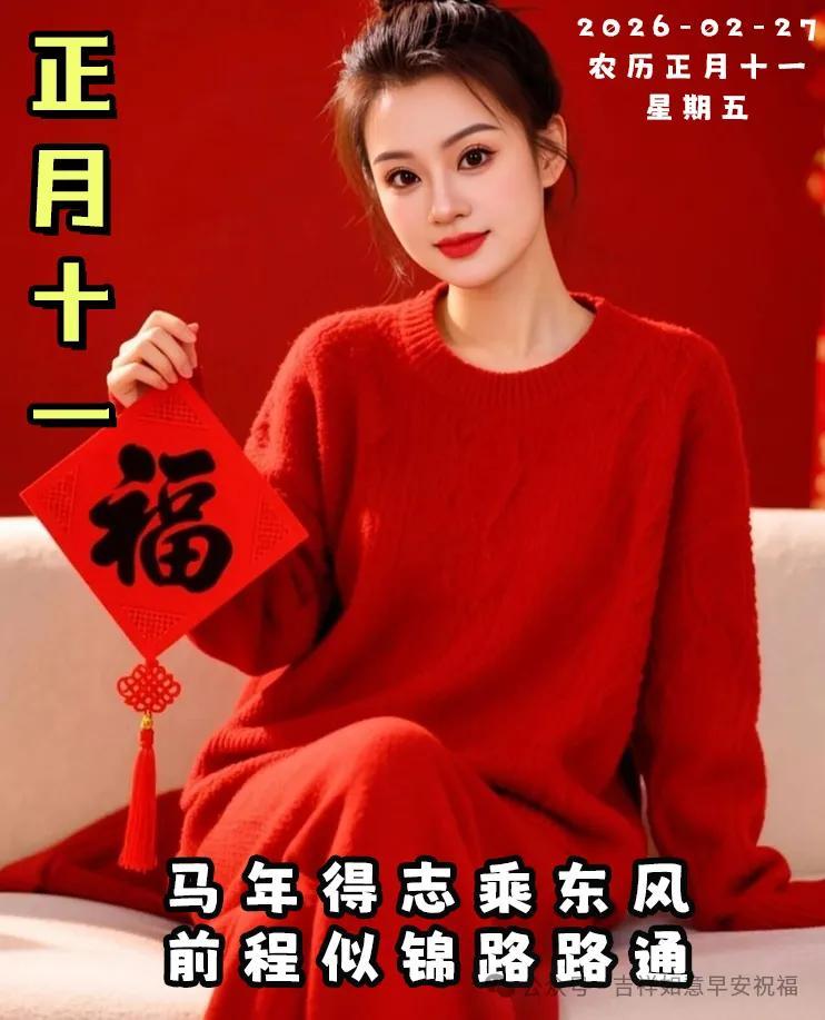 馬年到來喜事多,正月十一送福澤。願你財源滾滾來,幸福快樂緊相隨。祝你福如江海闊,壽比青松蒼。健康歡樂無邊界,馬年吉祥情更濃!❤️