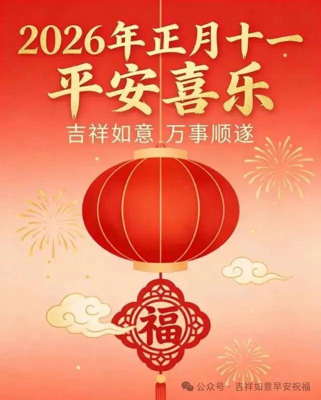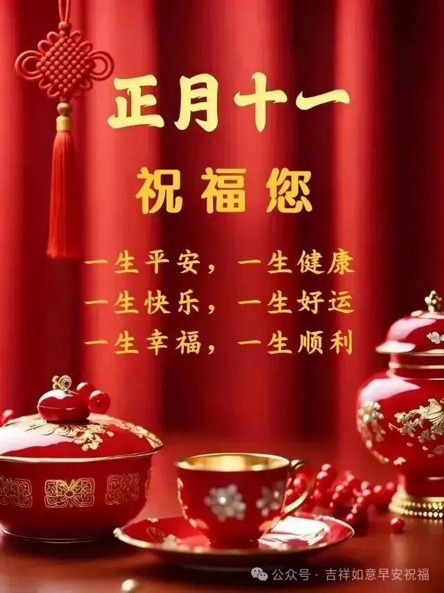 正月十一,至誠至意,歲歲年年,祝願你!願你:闔家美滿伴朝夕,前程錦繡伴朝夕,情投意合伴朝夕,摯友相守伴朝夕,當你開啓了這份祈願,你就開啓了祥瑞和鴻運,願你歲歲安康,年年喜樂。