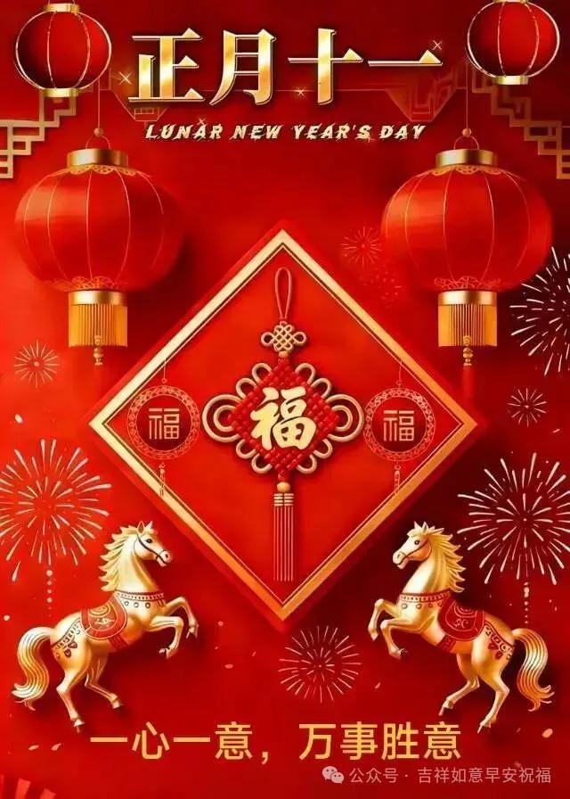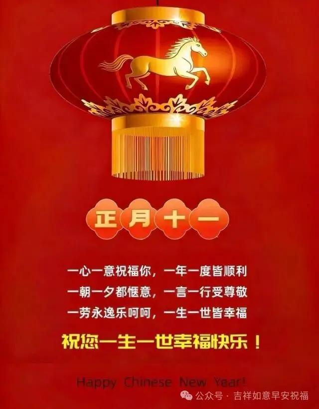 今天是正月十一,清晨問聲好!全心全意祝福你,此生此世無煩憂,每歲每年皆順意,馬年新徵程,馬到皆成(什麼都成),新的一年,步步登高,萬事勝意!