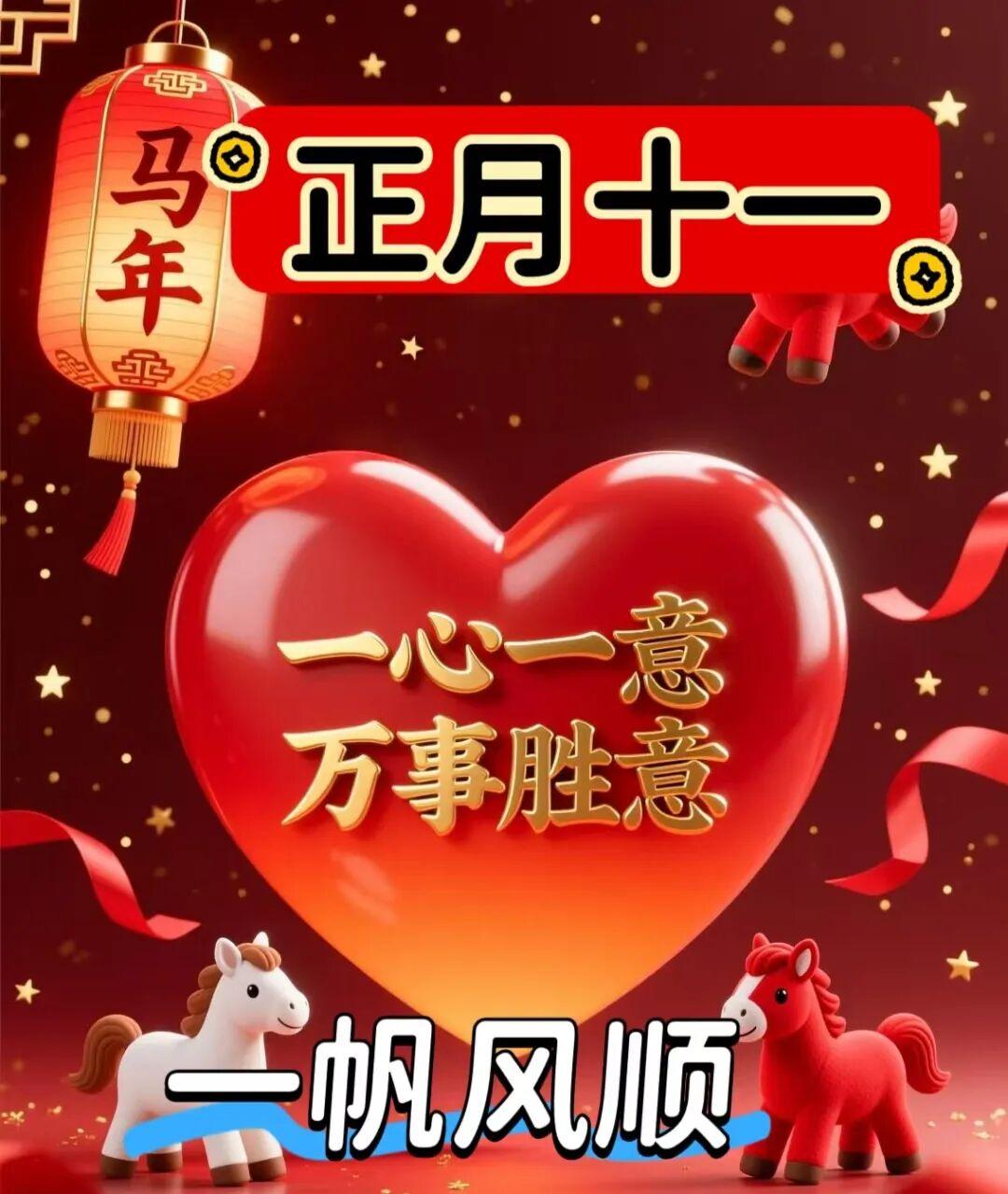 正月十一,迎新歲,啓新程,願你新年新篇章,一心一意行穩致遠,好運成雙而來,喜事接連不斷。新春歡愉,馬年騰達,祝福一心一意。早晨好!☀️