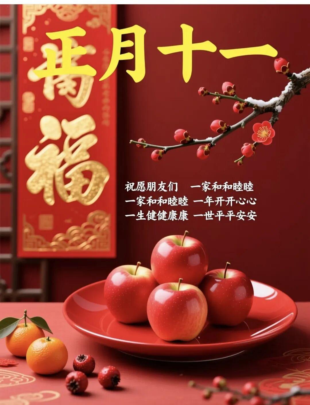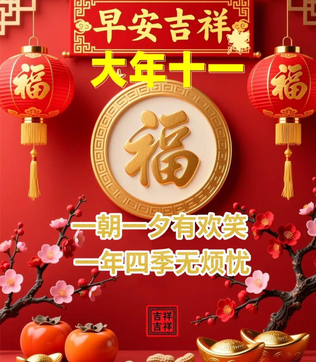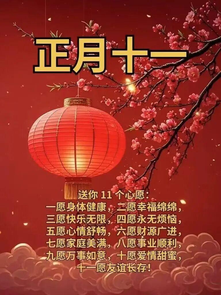 正月十一送吉祥,歲歲平安萬事昌,身體健康財源廣,吉祥如意福滿堂,開心快樂好運來,順風順水福無疆。早上好!