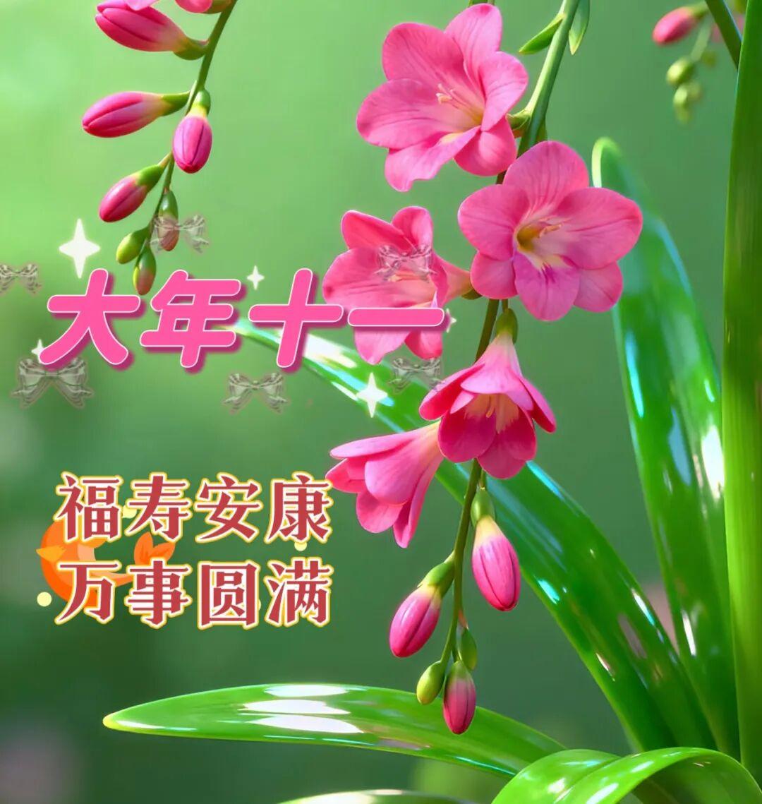 今天正月十一,送你十一束繁花願你鴻運照!一朵歡喜花,願你展笑顏!一朵好運花,願你福相伴!一朵成功花,願你前途坦️!一朵平安花⛰️,願你越千山️!一朵富貴花,願你生活甜!一朵健康花,願你身體棒!一朵幸福花❤️,願你樂逍遙!一朵桃花,願你桃花運♌!一朵事業花,願你事業興!一朵如意花,願你萬事全✅!