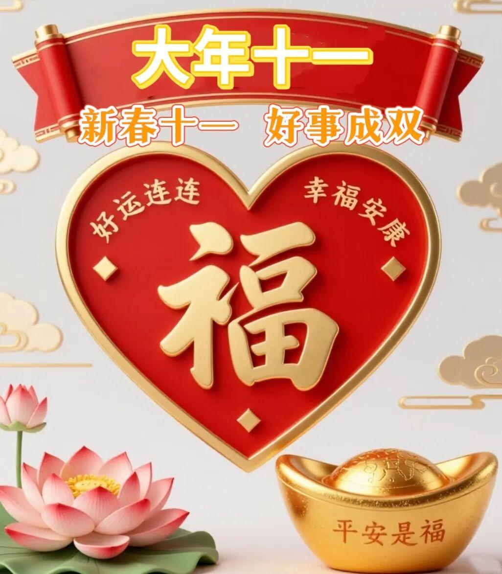 大年十一瑞氣升,萬家燈火伴春藤,春風送暖添清爽,紫氣東來伴月明,四海賓朋齊聚首,八方財富入高層,笑看紅塵多過往,喜度華年步步升,祈願宏圖皆大展,錦繡前程好攀登!早安,大年十一快樂,春節安康~