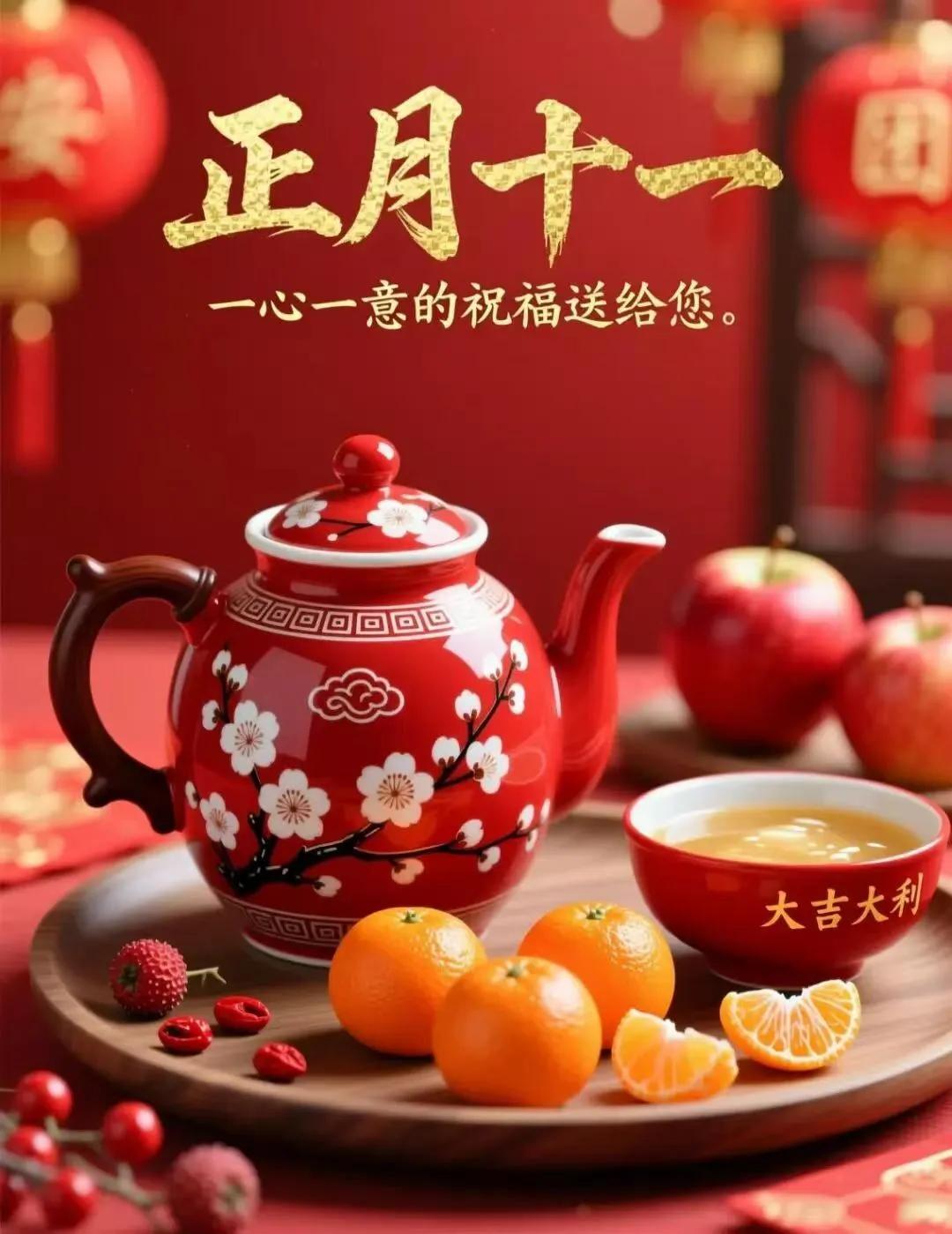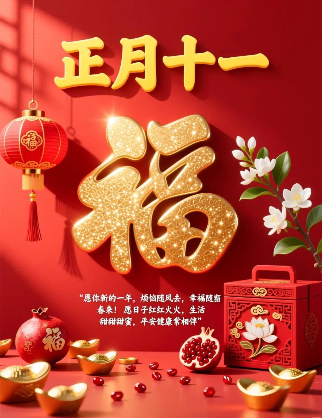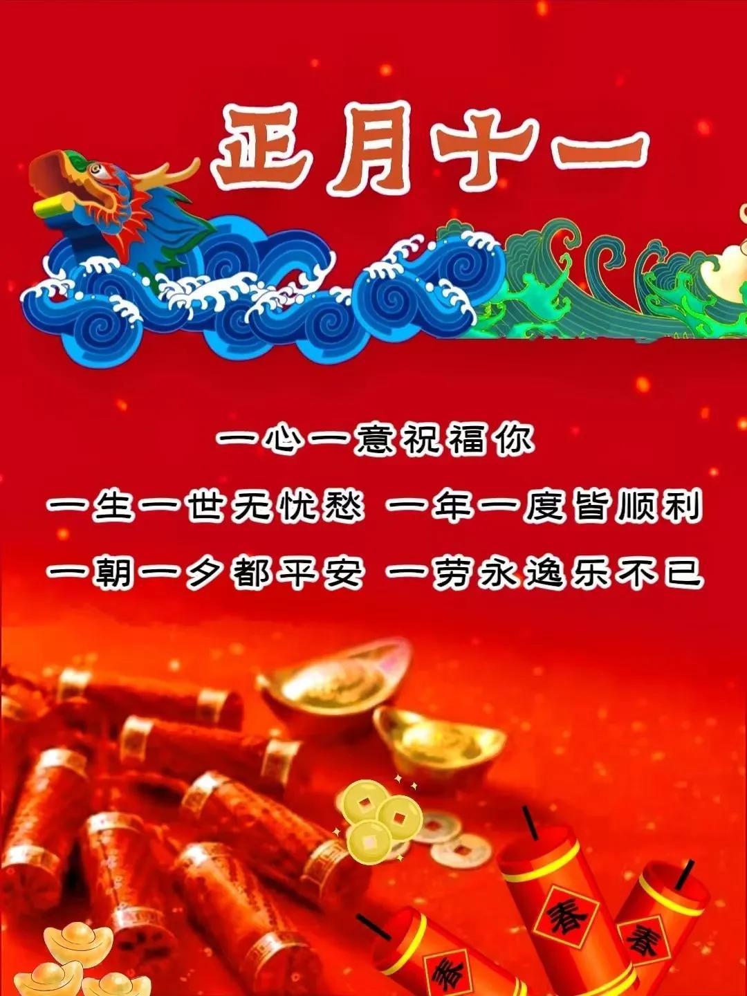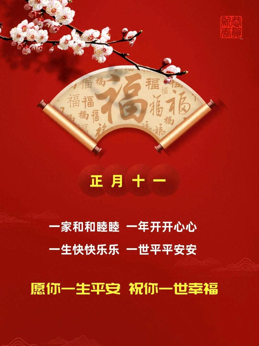 大年初十一,清晨送安康,願你心中有光,眼裏有笑,生活有暖,日子有甜。煩惱隨風去,好運步步來。健康常相守,福氣常圍繞。新的一天,平安喜樂,事事順心