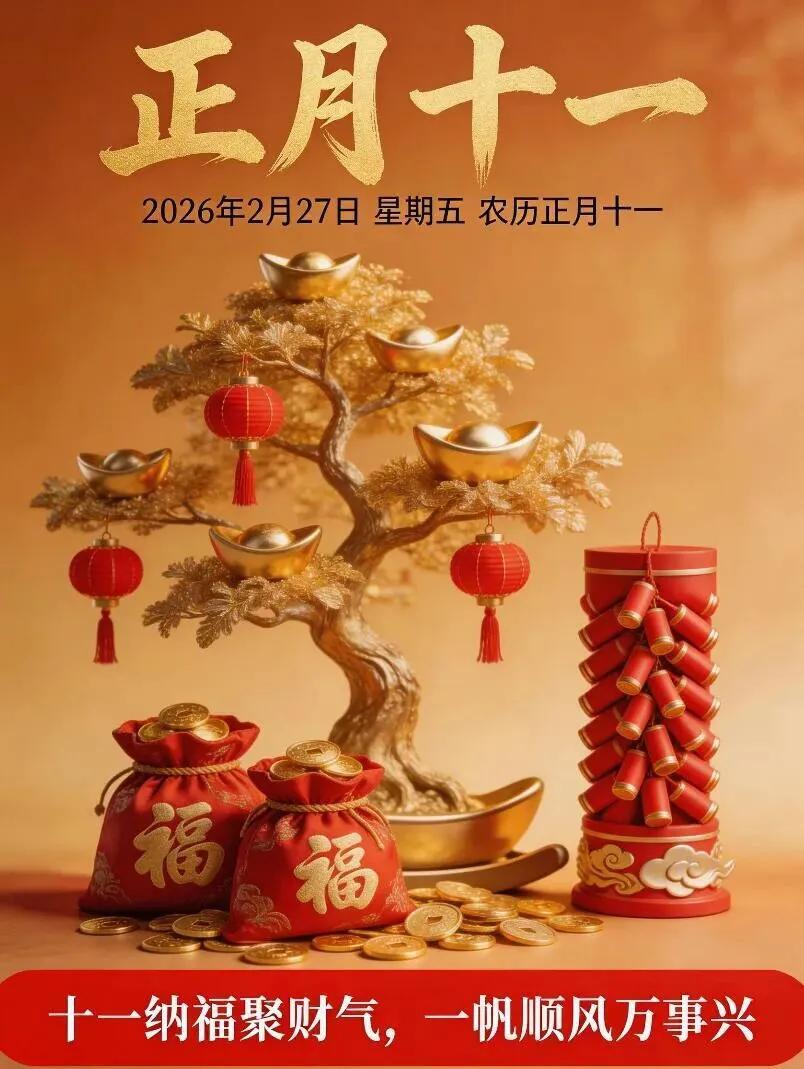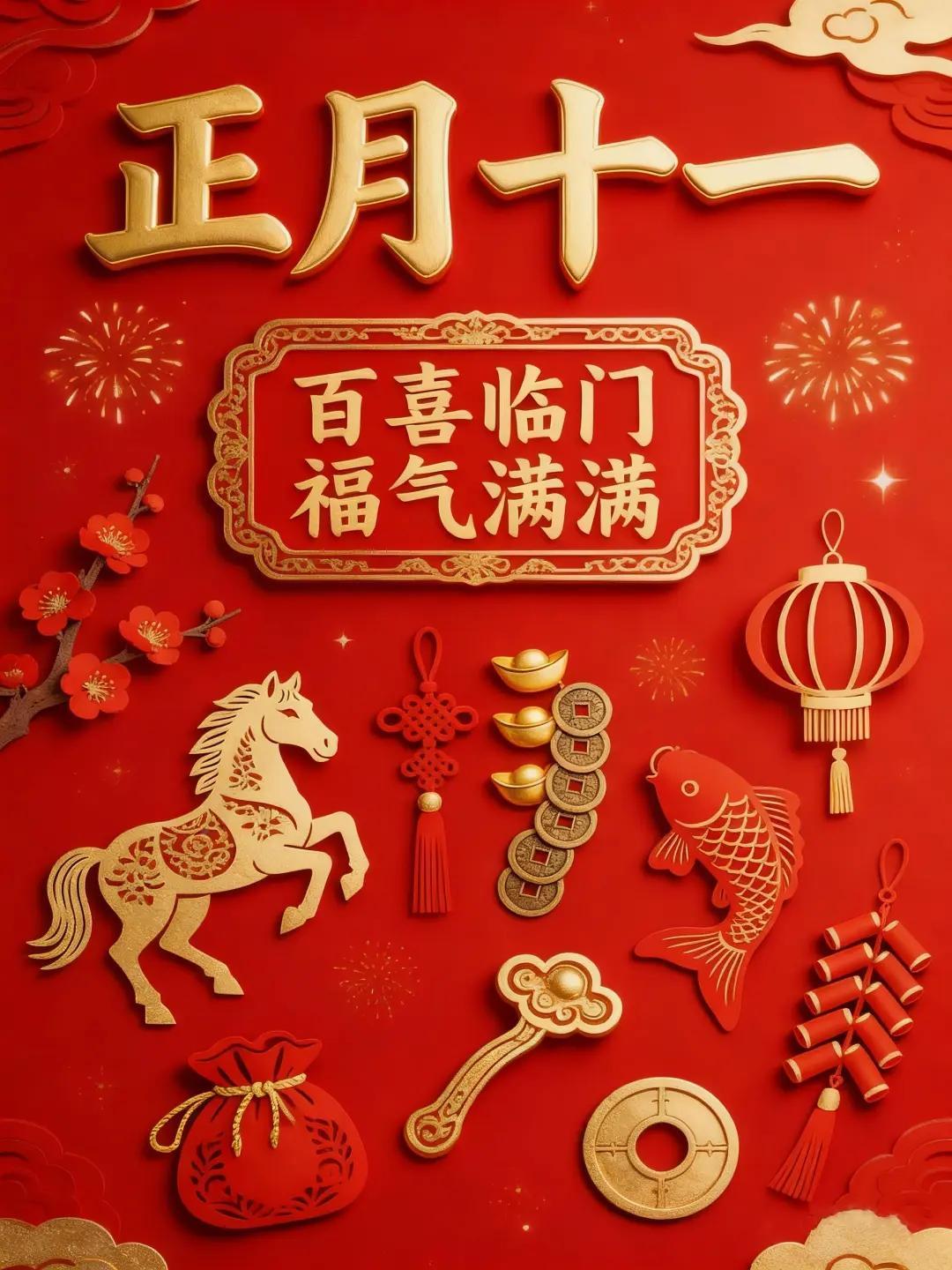 正月十一,納吉迎祥!迎金馬送福,納五穀滿盈。一願生活無虞,富足常伴;二願家宅興旺,眷屬安康;三願歲月安寧,萬事長興。2026年,祝你把福氣裝滿懷,把好運握在手,日日順遂,歲歲安康!