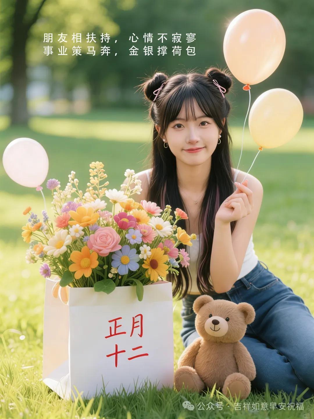 正月十二的晨曦向您道聲早;健康常相伴,煩惱全溜掉;父母常健在,孝心永照耀;知己常交流,歲月不枯燥;事業節節高,財富把門敲。鴻運當頭照,每天都是寶。