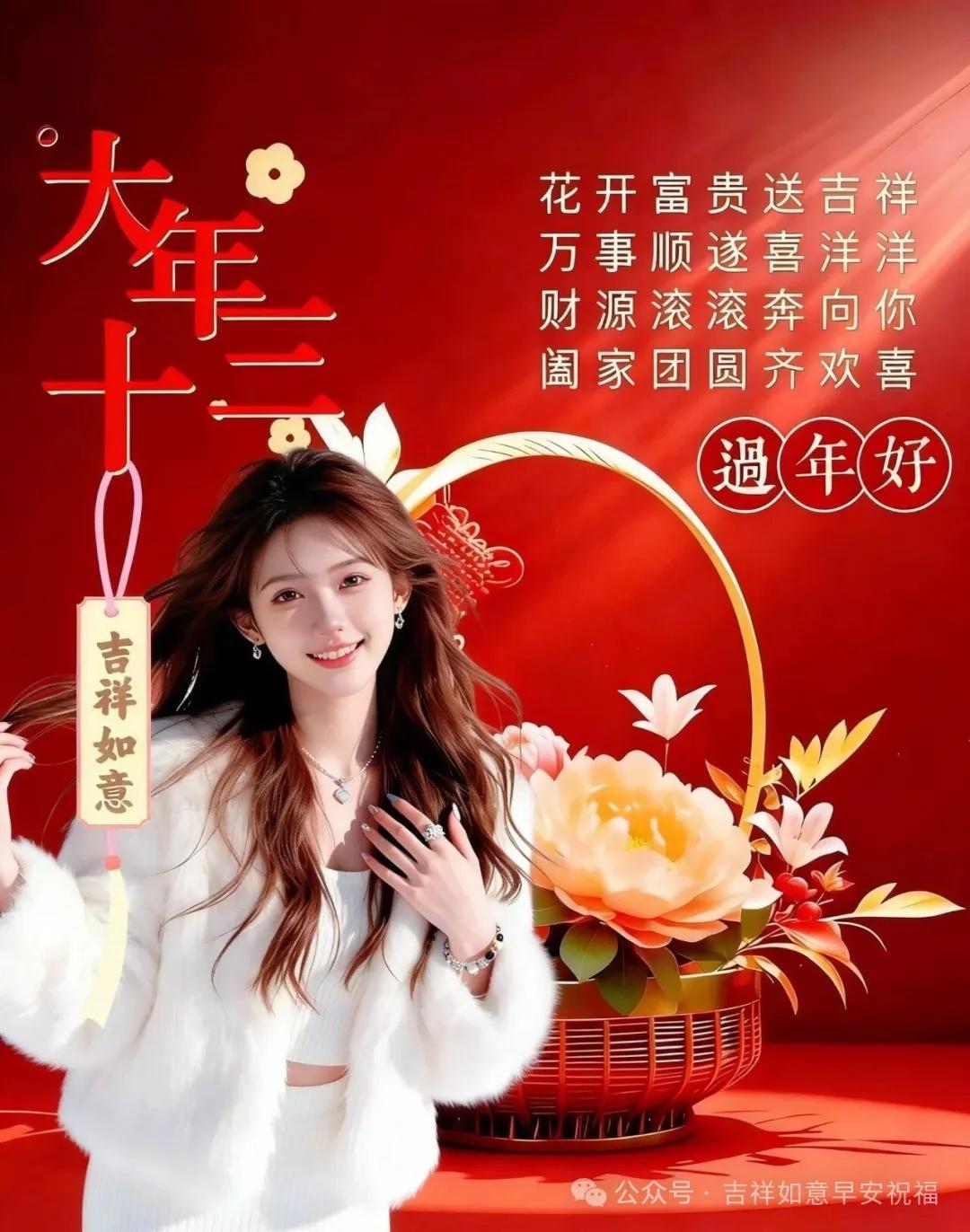 正月十二喜氣盈,願你生活步步升 事業路上遇春風,財運亨通萬事興