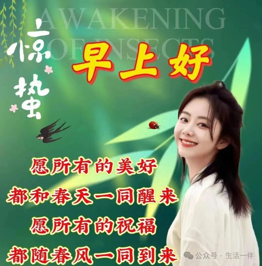 驚蟄春雷第一聲,捎去我的真心意。草木萌發綠意濃,好運伴隨春風至。✨煩惱消散憂愁去,開心快樂每一天。驚蟄節氣送關懷,願你此生永如意!
