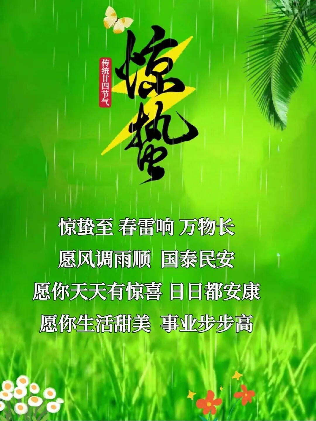 驚蟄之日送祝願,幸福如花綻笑顏;細雨綿綿潤大地,微風拂面帶花香;四季輪迴皆美好,歲歲年年福綿長。早上好!❤️☀️