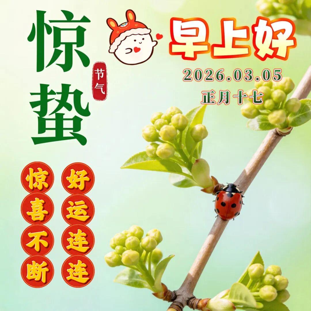 一雷驚蟄始,微雨衆卉新。願你所有的堅持,都有回應;所有的等待,都有歸期。驚蟄快樂,萬事順意!早上好!
