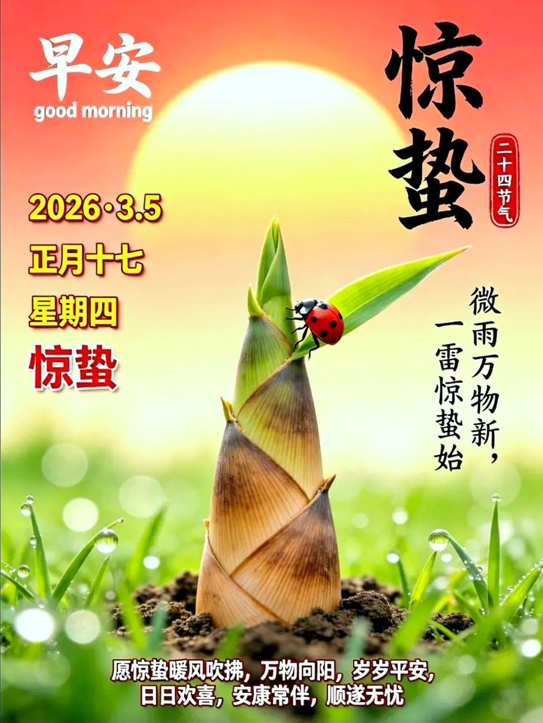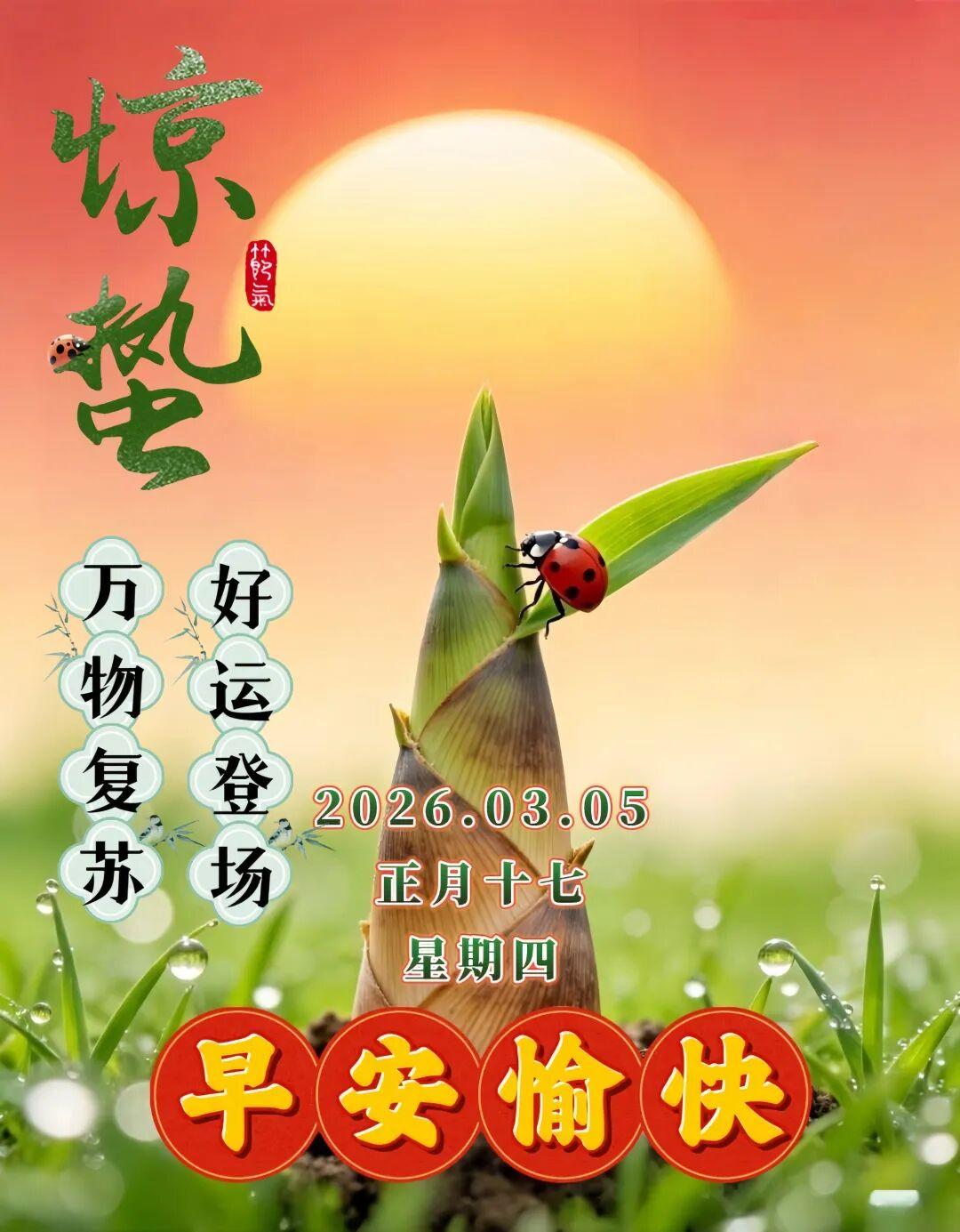 3月5日-正月十七驚蟄早安祝福圖片,驚蟄祝福語問候
