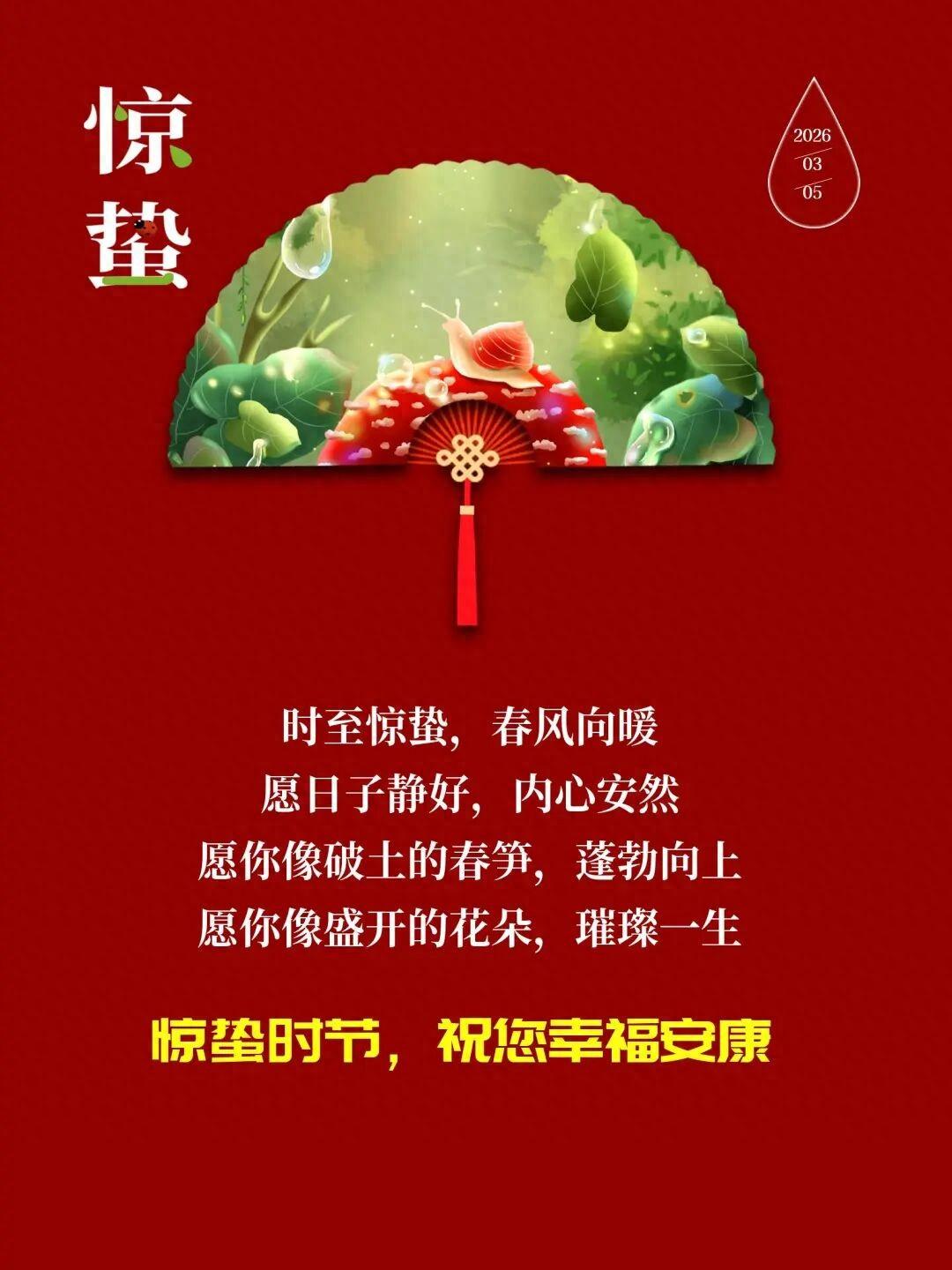 驚蟄一到萬物蘇,願你快樂甦醒,一路高聲歌唱;幸福甦醒,天天散播芳香;好運甦醒,時時在你身旁;祝福甦醒,願你心情最閃亮!驚蟄快樂!