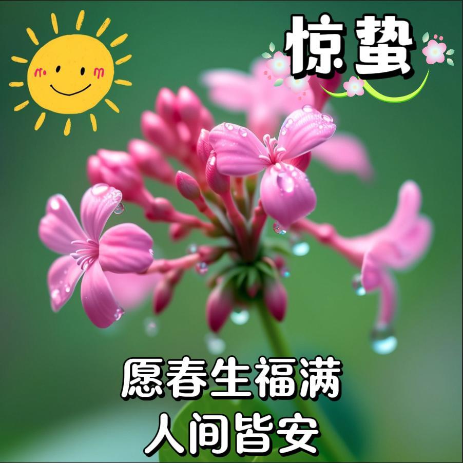 春雷喚醒好時光⏰,驚蟄送來百花香。清晨祝福暖心房,願你歲歲都安康。煩惱憂愁全遺忘,快樂幸福在身旁,事業順利步步高,日子溫柔又閃亮,人生處處皆晴朗☀️。
