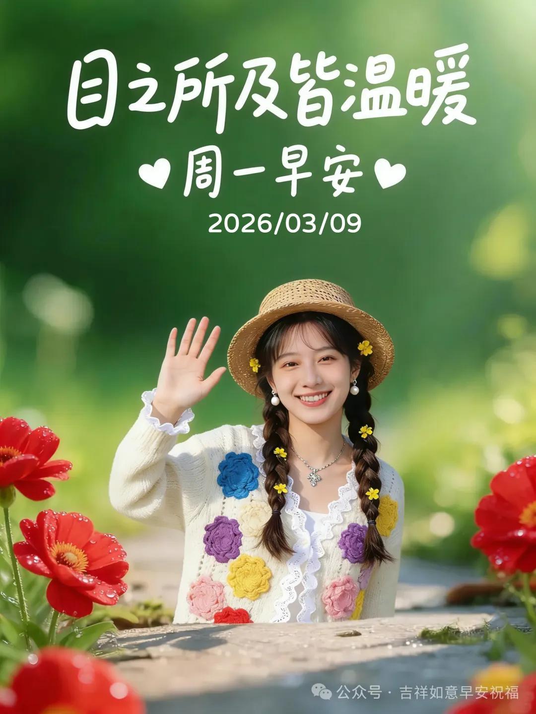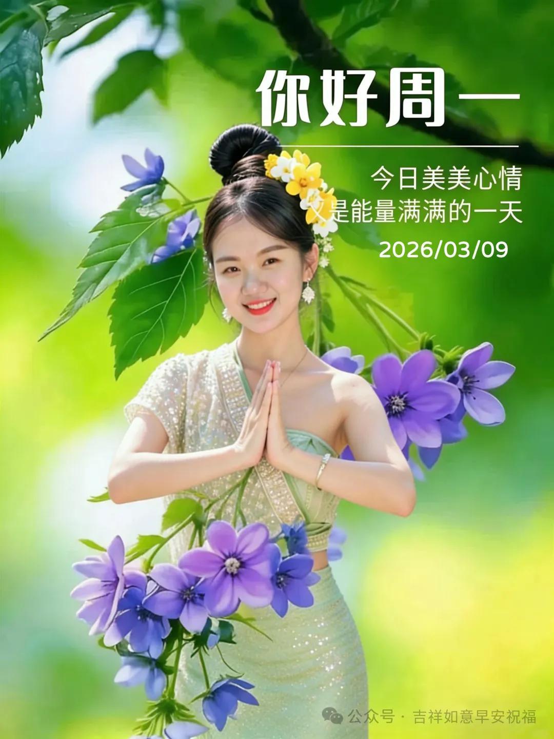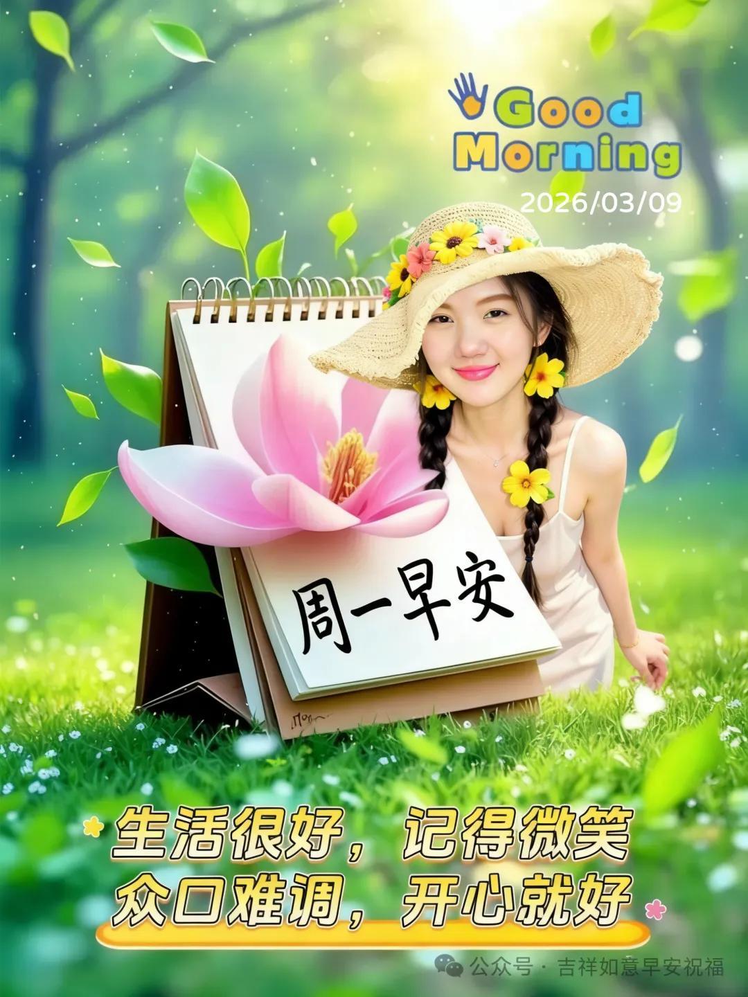 星期一 3月9日 正月二十一 超漂亮早上好美女 祝福美圖和文案