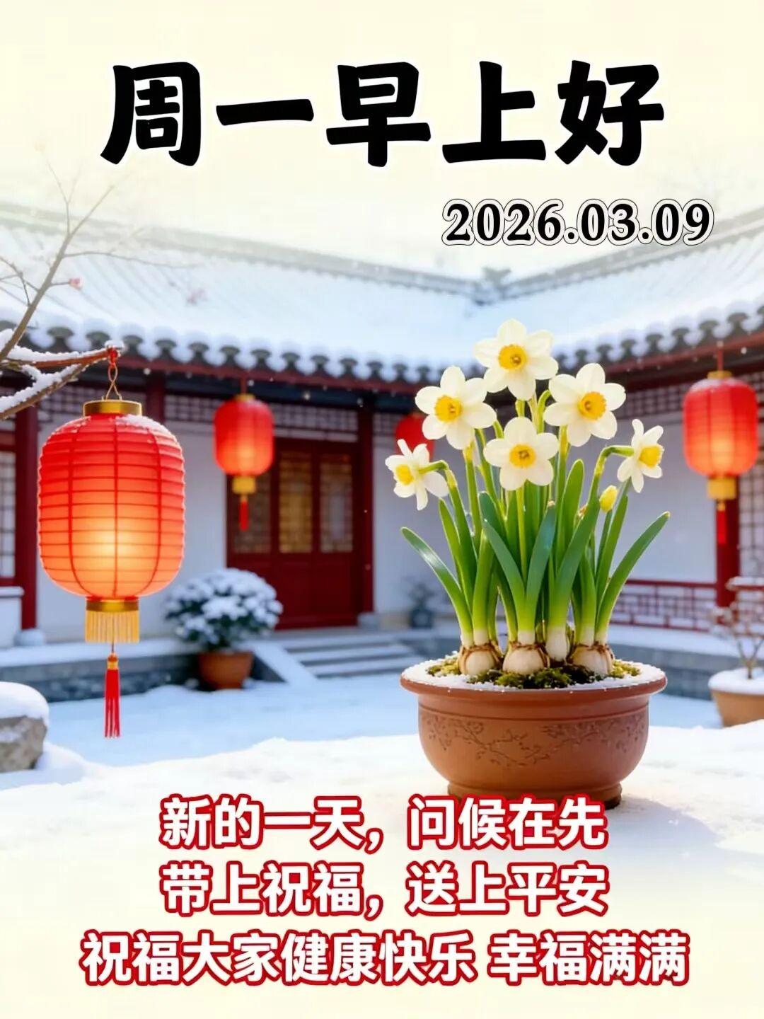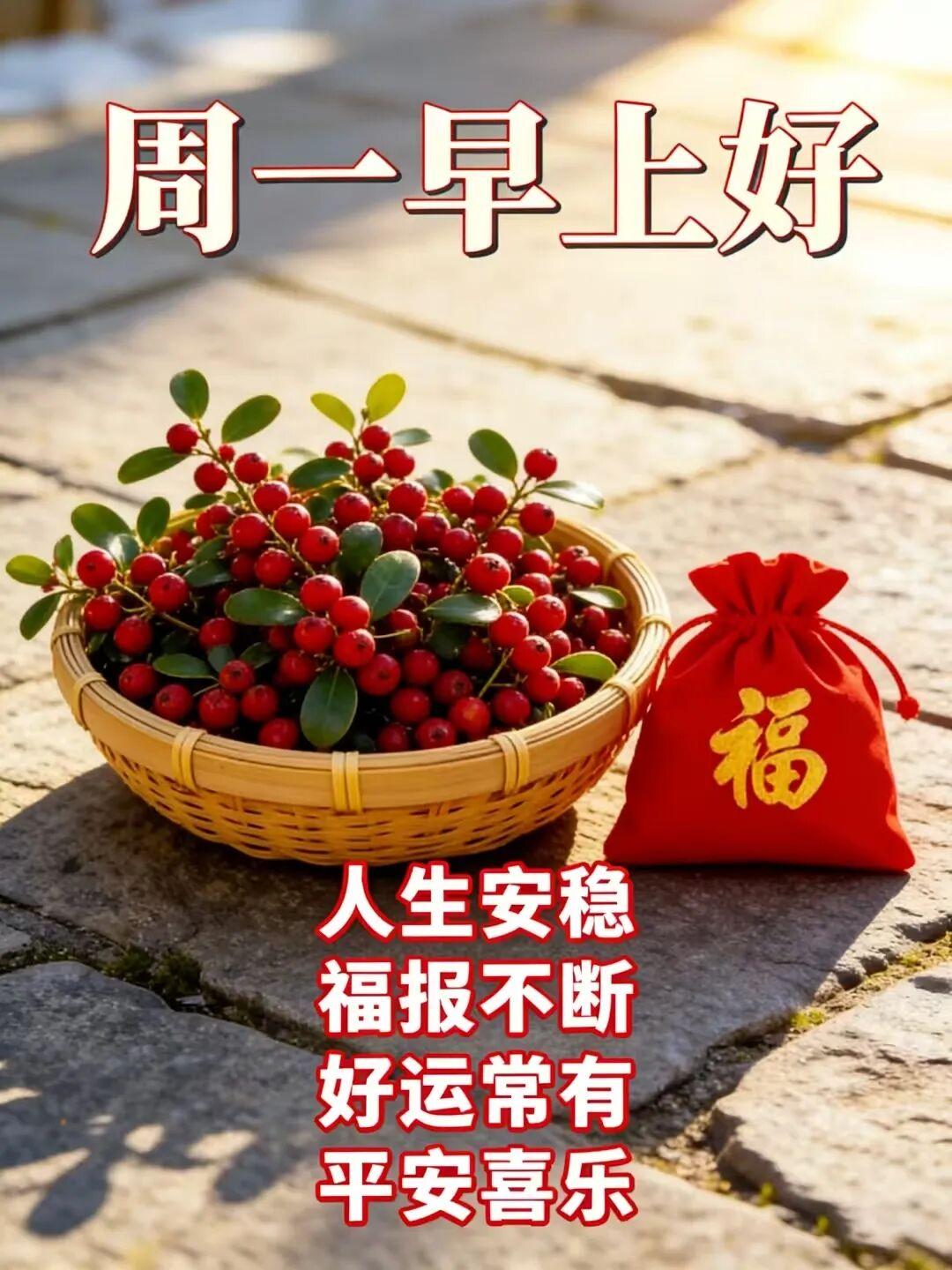 今天星期一,祝福慢慢送,一送你緣分的“緣”,送一個祝福是一種緣;二送你財源的“源”,祝你每一天都有財源;三送圓滿的“圓”,☘願你家庭幸福團團圓圓!