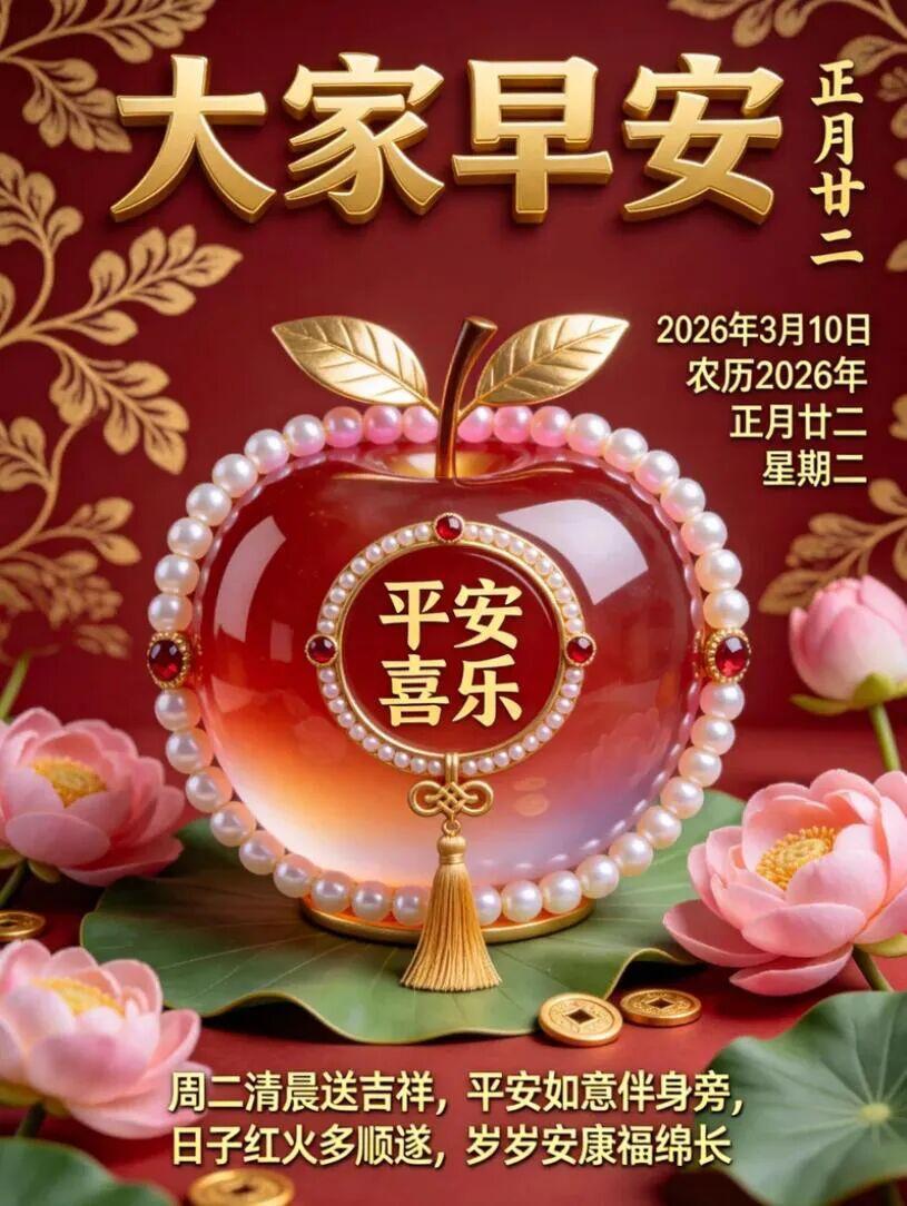 新的一天,甩掉疲憊,帶着星辰與熱愛重新出發,生活或許忙碌,但心要輕盈。願今日事事皆順,早安打工人!願安康永駐似松長青,福運流轉若水長盈,每個晨昏皆有暖意相擁,歲歲年年盡是坦途安寧,所有期許皆乘風抵達,恰似春芽破土終成林蔭。早上好!