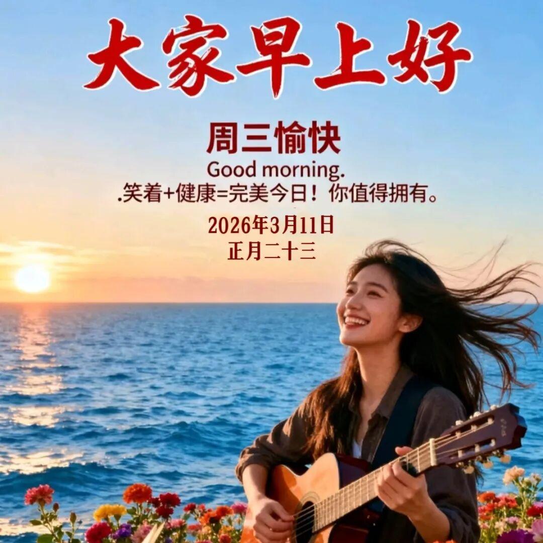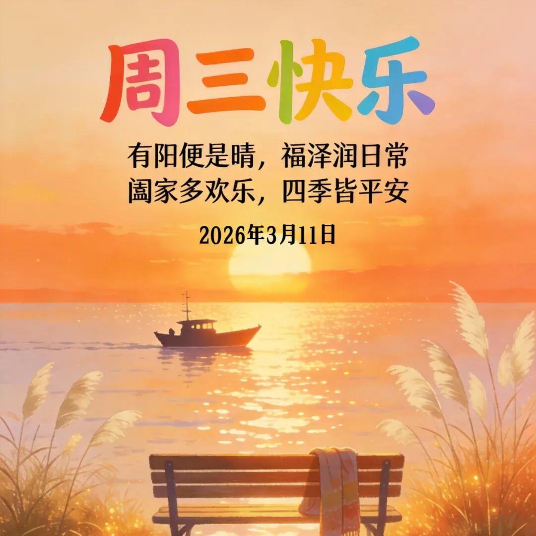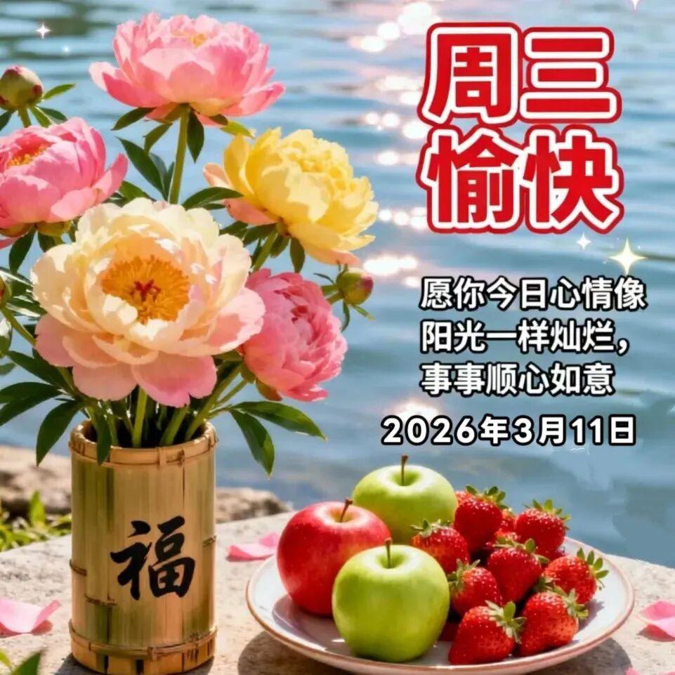 今天是週三,早上給親友送上祝福,真誠祝福您:年年都吉利,金錢往外溢,夢裏笑嘻嘻,事事都如意,天天好運氣,每時每刻都開心如意,凡事皆順利!