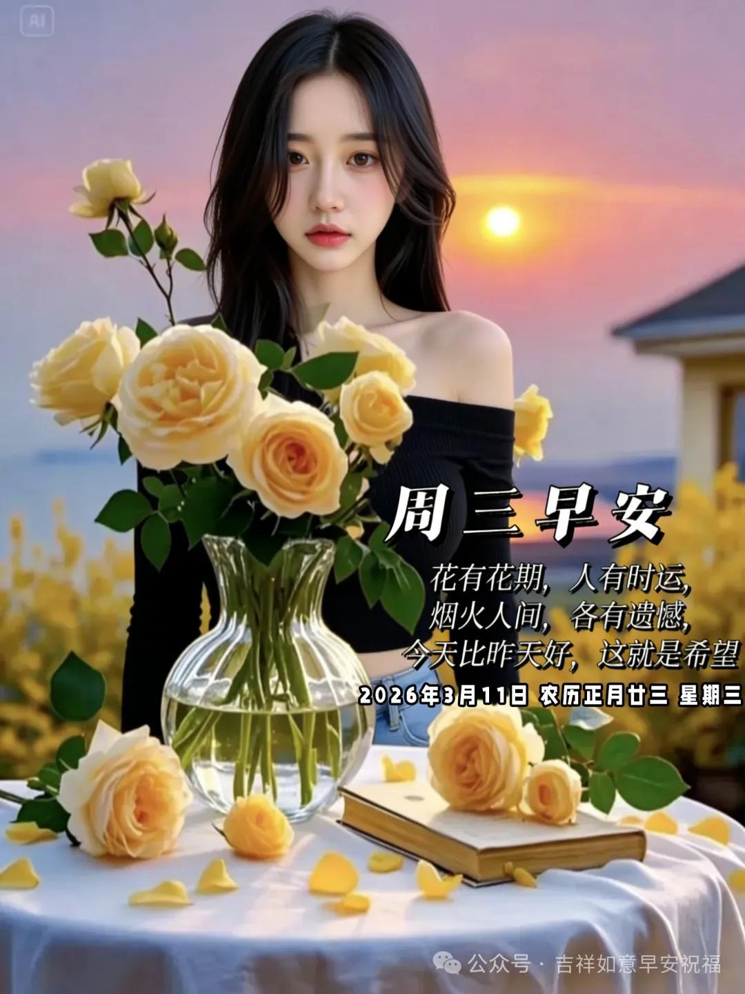 2026年,好好寵愛自己,善待自己,取悅自己,到了靜心養性的年紀,遇事不怒,管好情緒,看淡想開,隨心而活,順其自然!早安,週三快樂,三月安康~