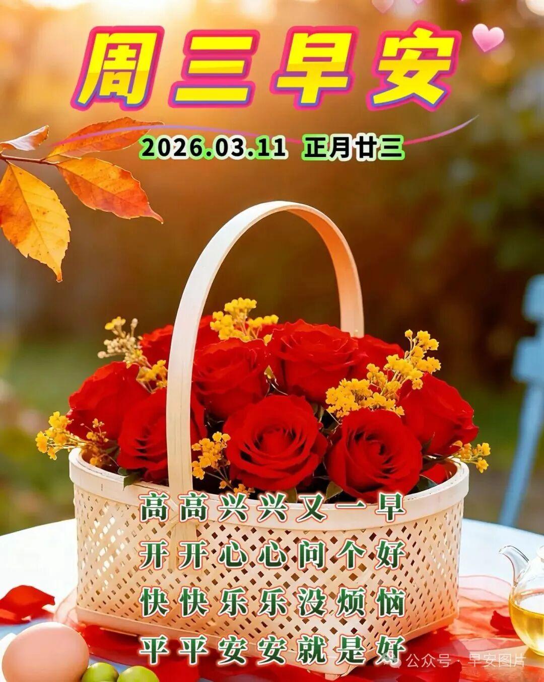 週三早安吉祥!醒來的第一縷陽光,是生命最美麗的禮物;早晨的清新空氣,是健康最重要的源泉。☀願你今天充滿愛和能量,擁有充實的工作和幸福的生活。