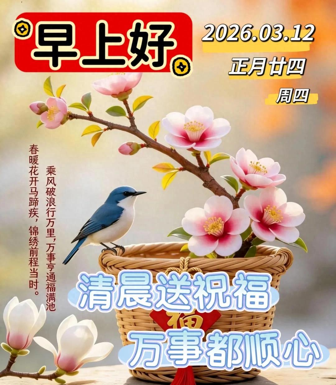願你的生活如詩般浪漫唯美、如畫般絢麗多彩;事業蒸蒸日上、家庭幸福美滿;朋友遍佈天下、處處都是歡聲笑語。祝福你一切順利如意、心想事成!大家早安!!