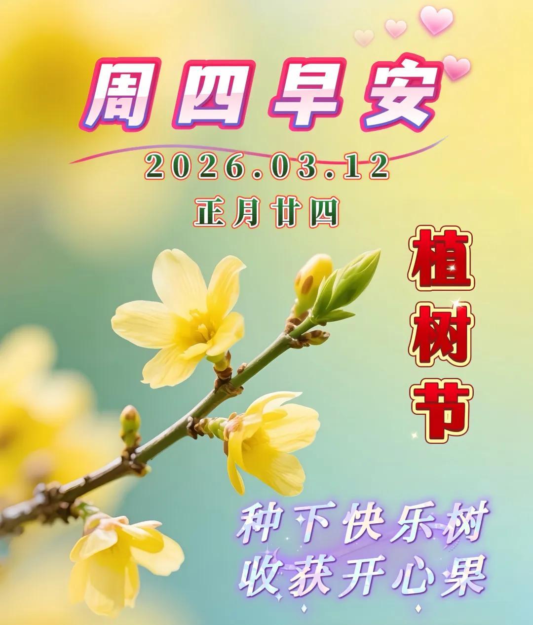 今天3月12日植樹節,種下平安,收穫歲歲安康;種下健康,收穫元氣滿滿;種下好運,收穫一路繁花;種下財富,收穫節節高升;種下快樂,收穫滿心歡喜;種下溫柔,收穫世間溫暖;祝您天天開心!