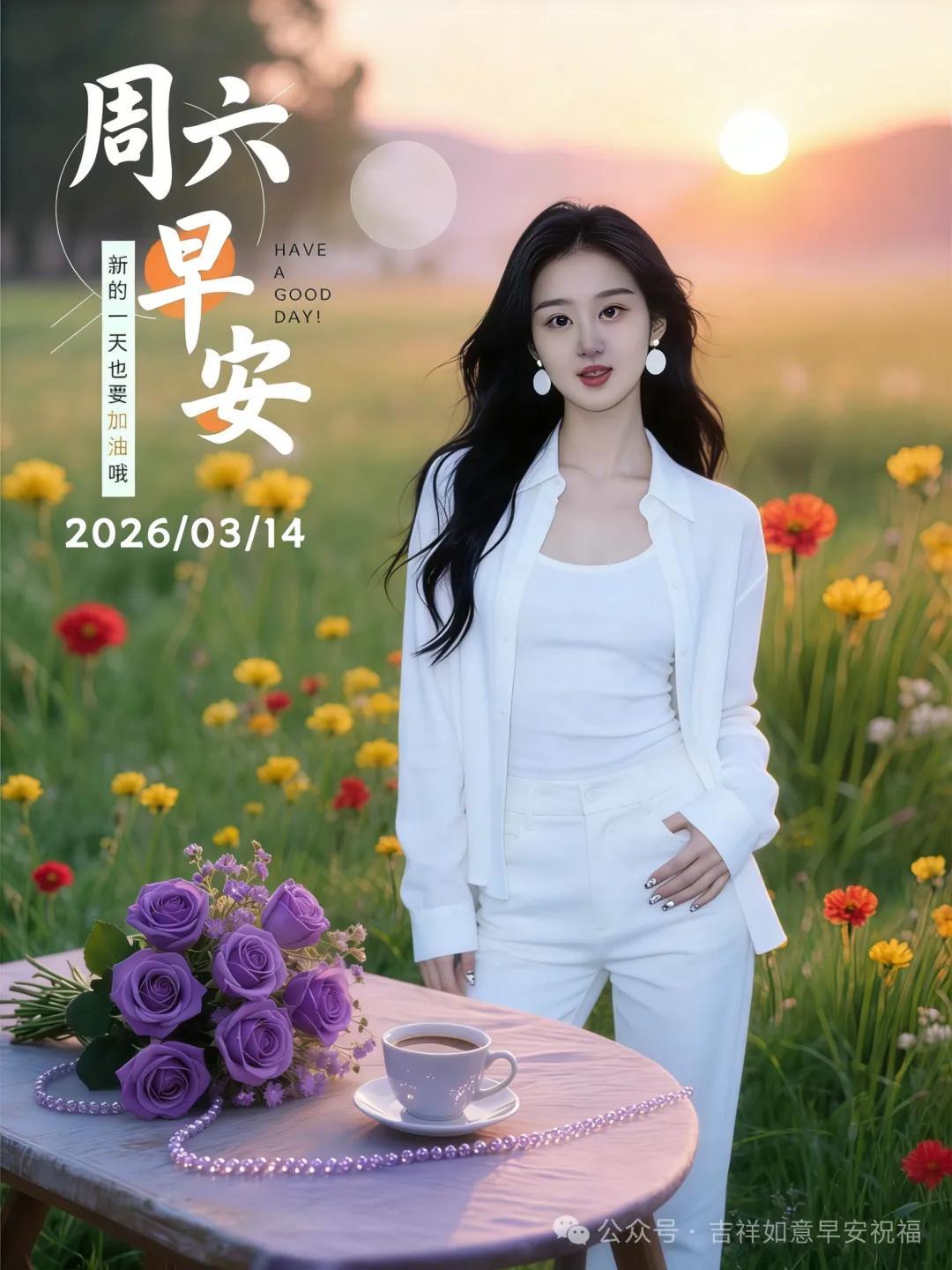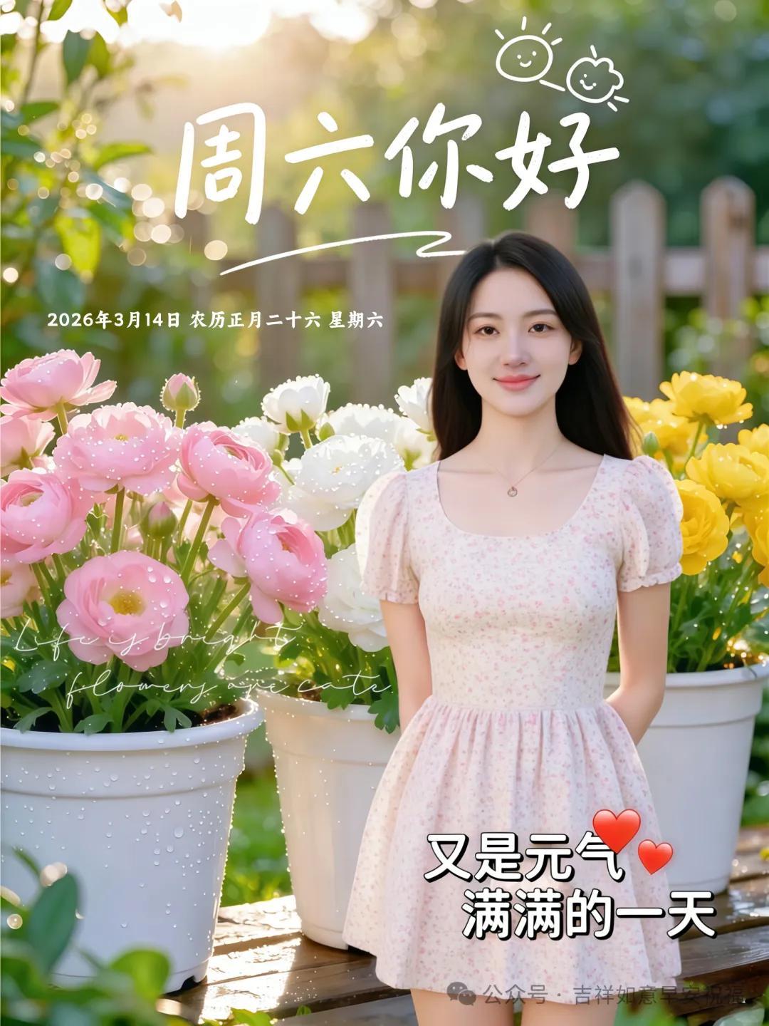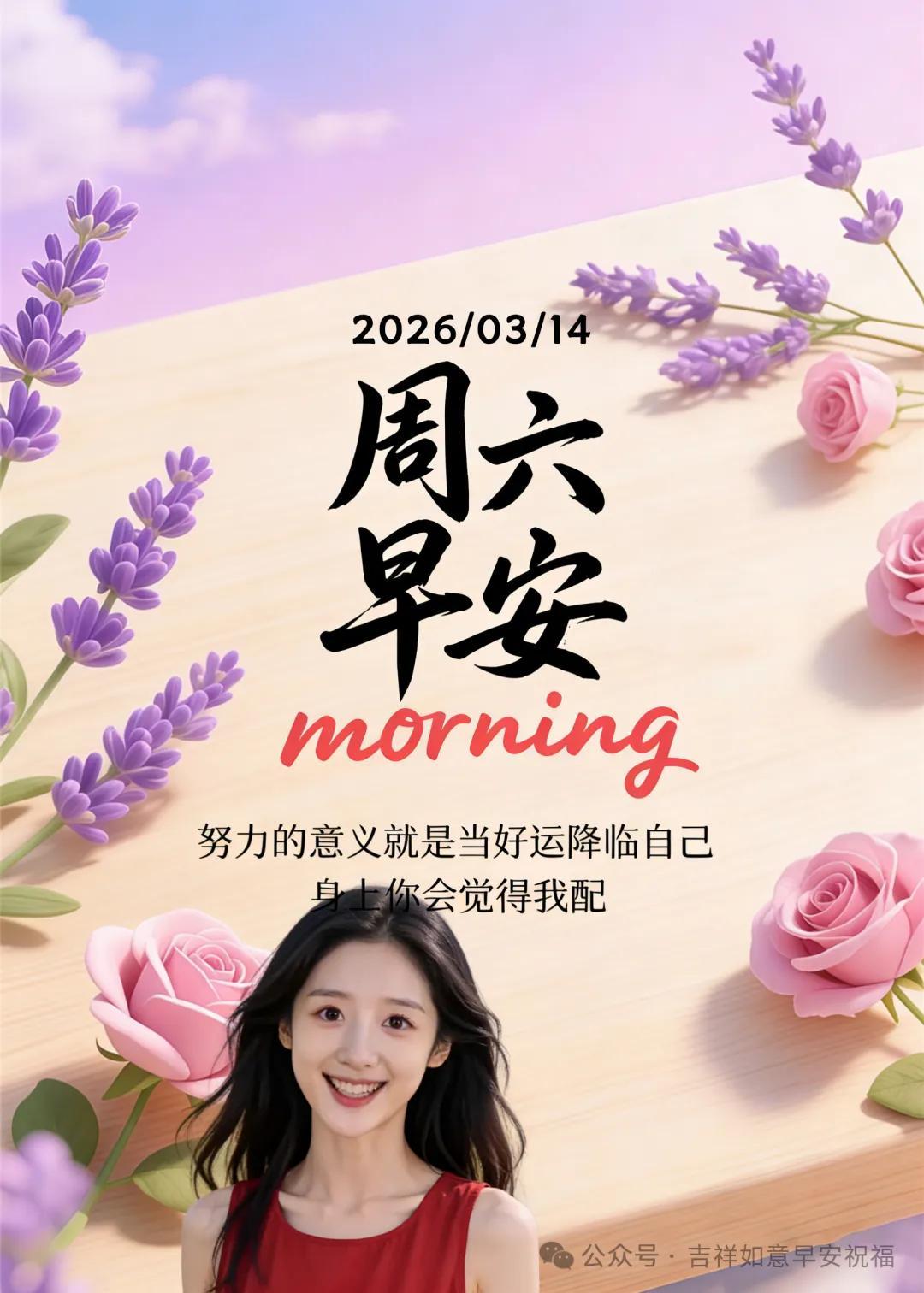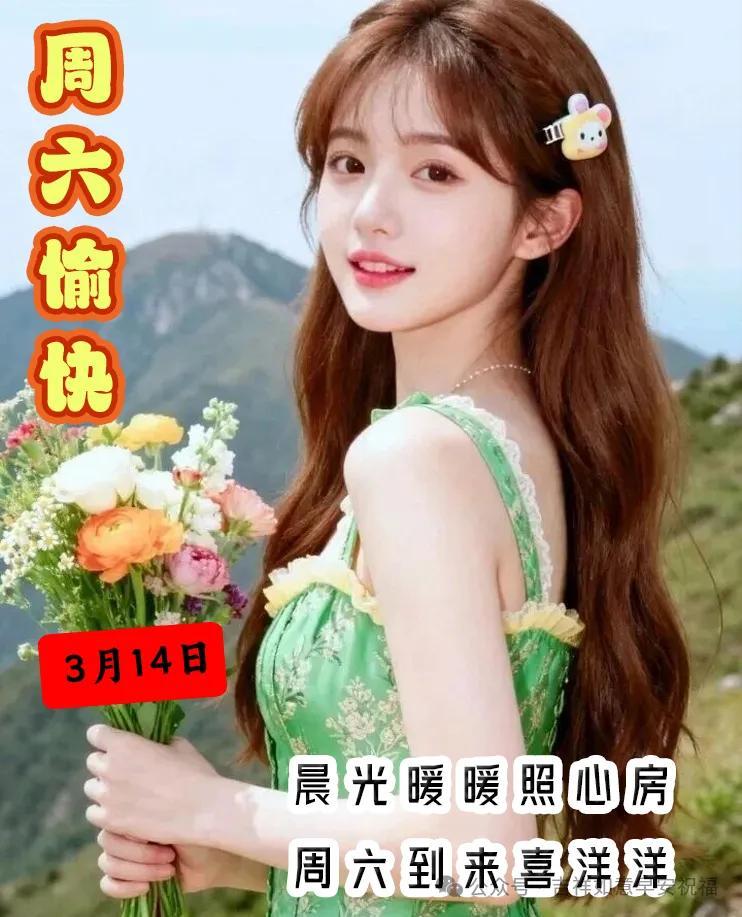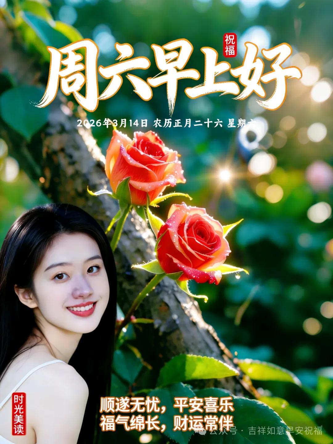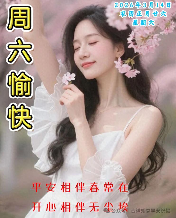 2026年3月14日 星期六 正月廿六 今日美女早安送祝福圖片配文案