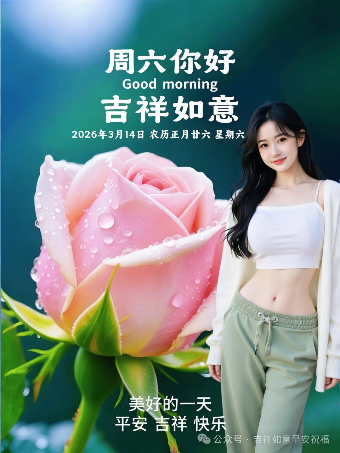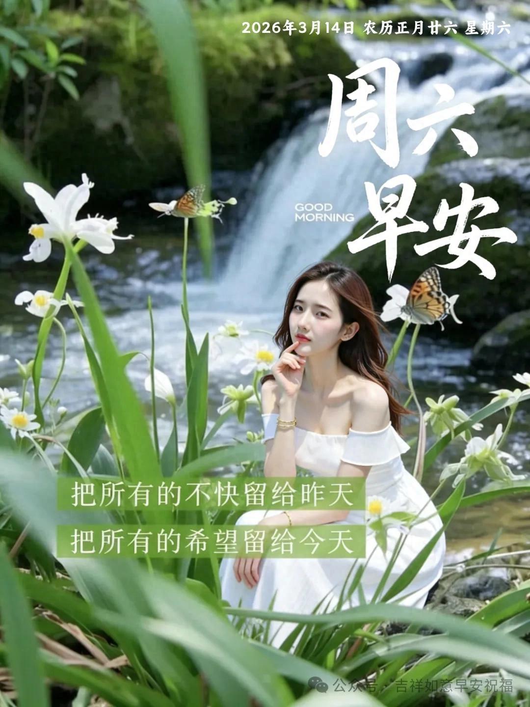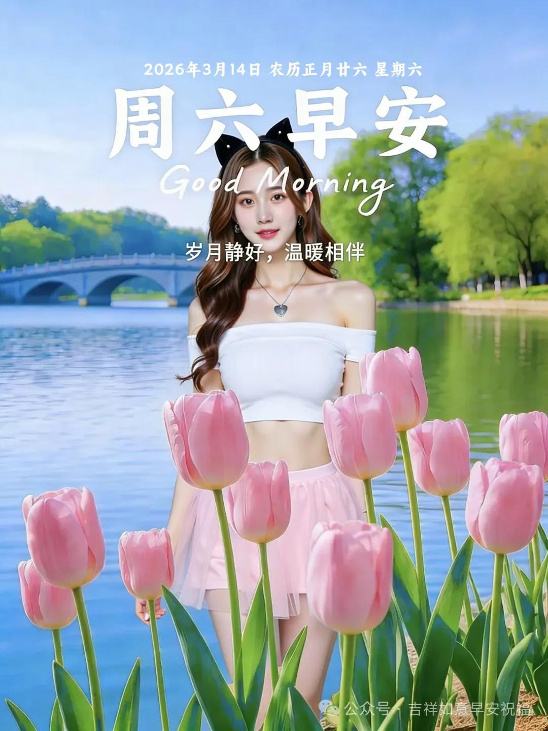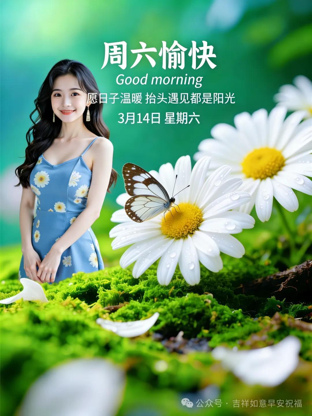 星期六 3月14日 超漂亮早上好美女 祝福美圖和文案
