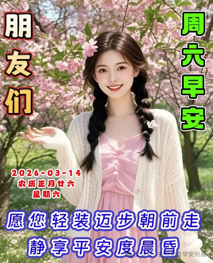 週六快樂,朋友們!送去清晨問候,迎來美好一天。問候簡簡單單,送來真誠實意;⭐祝福萬萬千千,願你幸福如意!輕輕道聲早安,祝願快樂每天、平安健康相伴!
