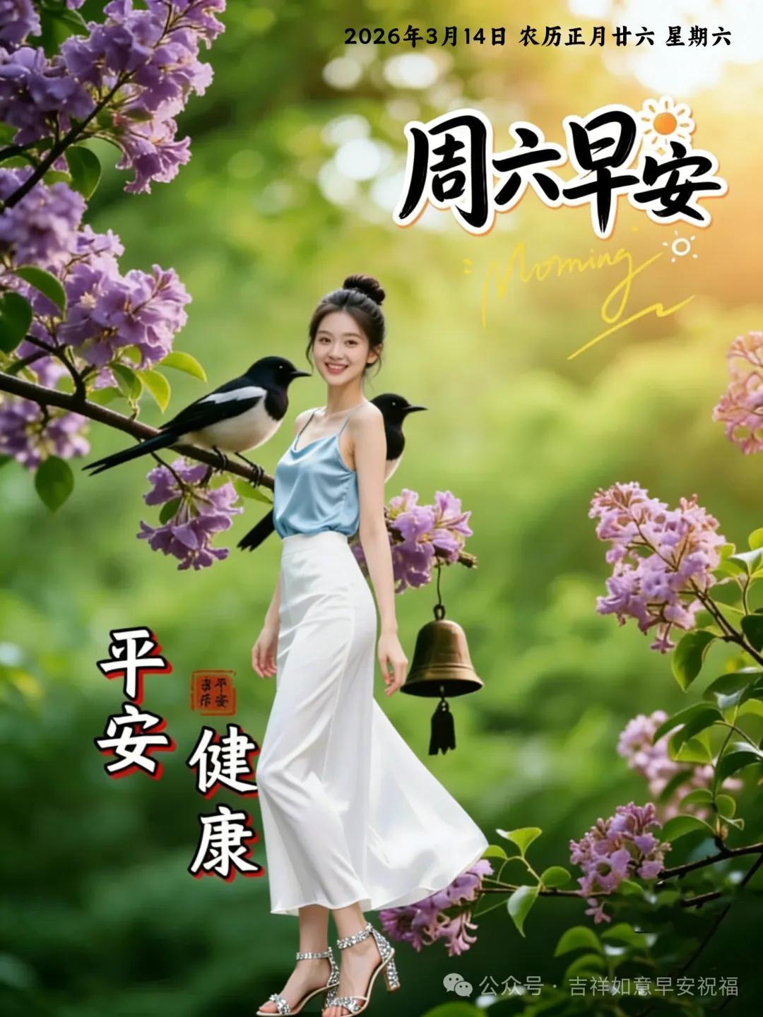 輕輕問候送身旁,願你平安樂未央;美美心情常相伴,願你幸福又安康;暖暖情懷藏惦念,願你如意納吉祥;❤️深深祝福寄晨光,願你好運久綿長。早安!