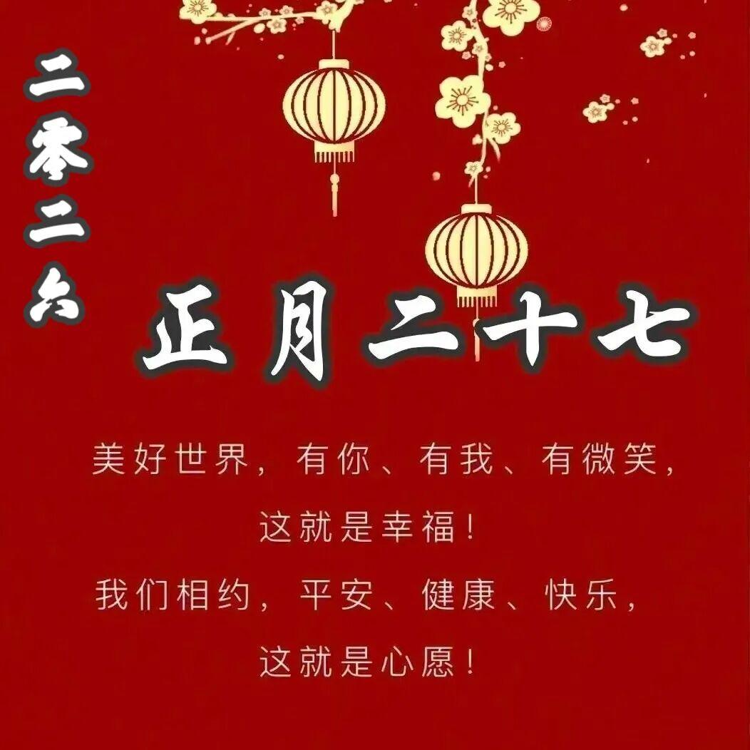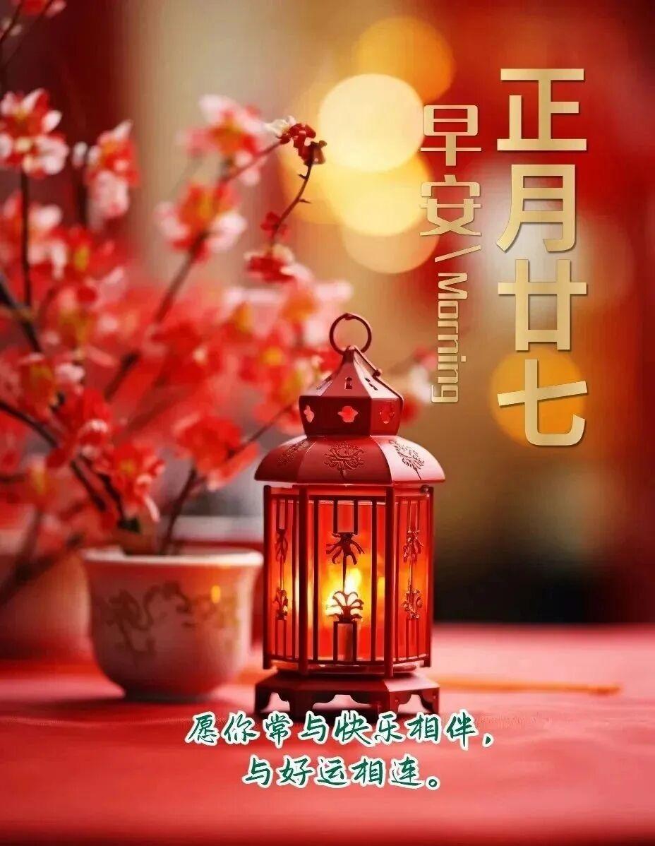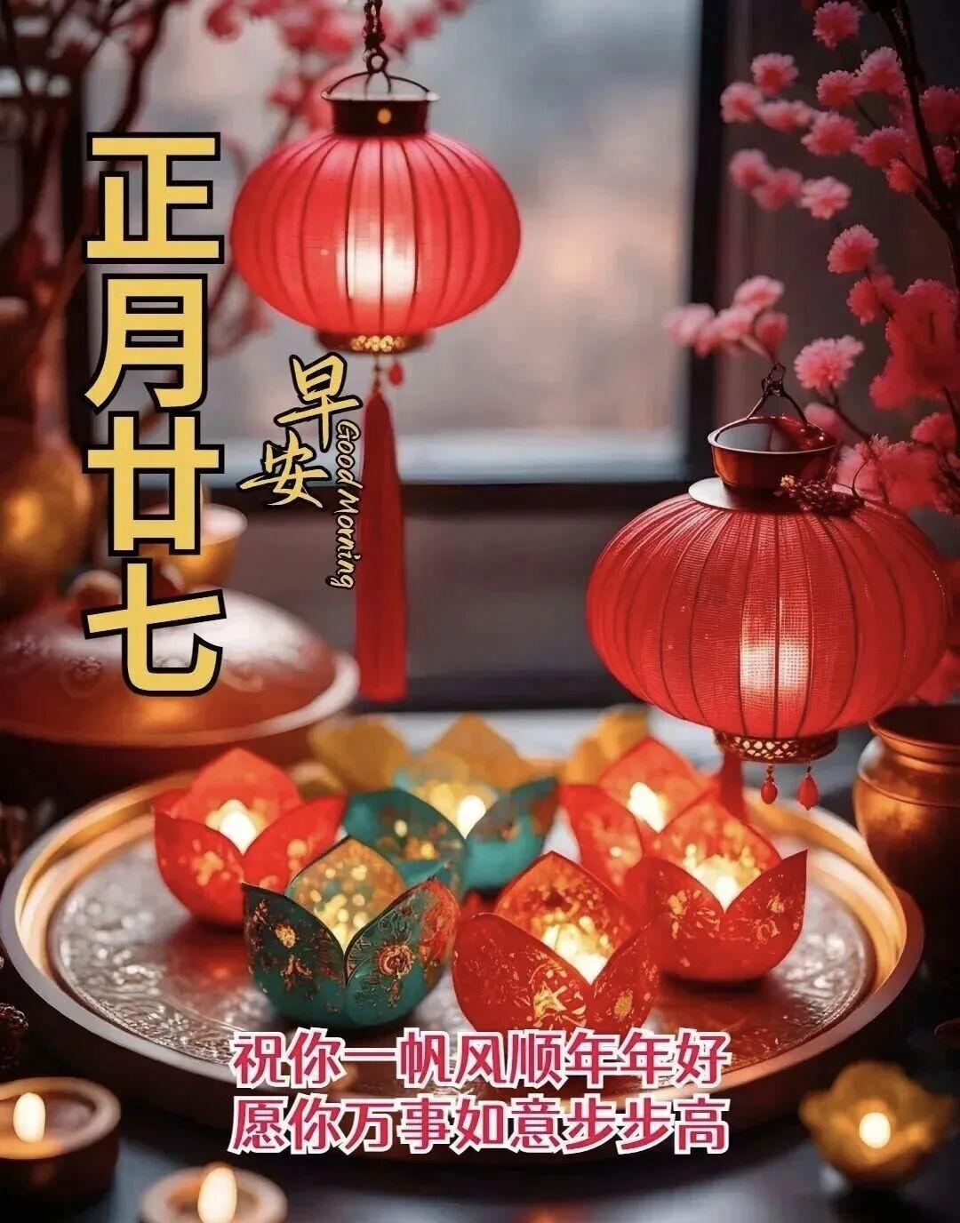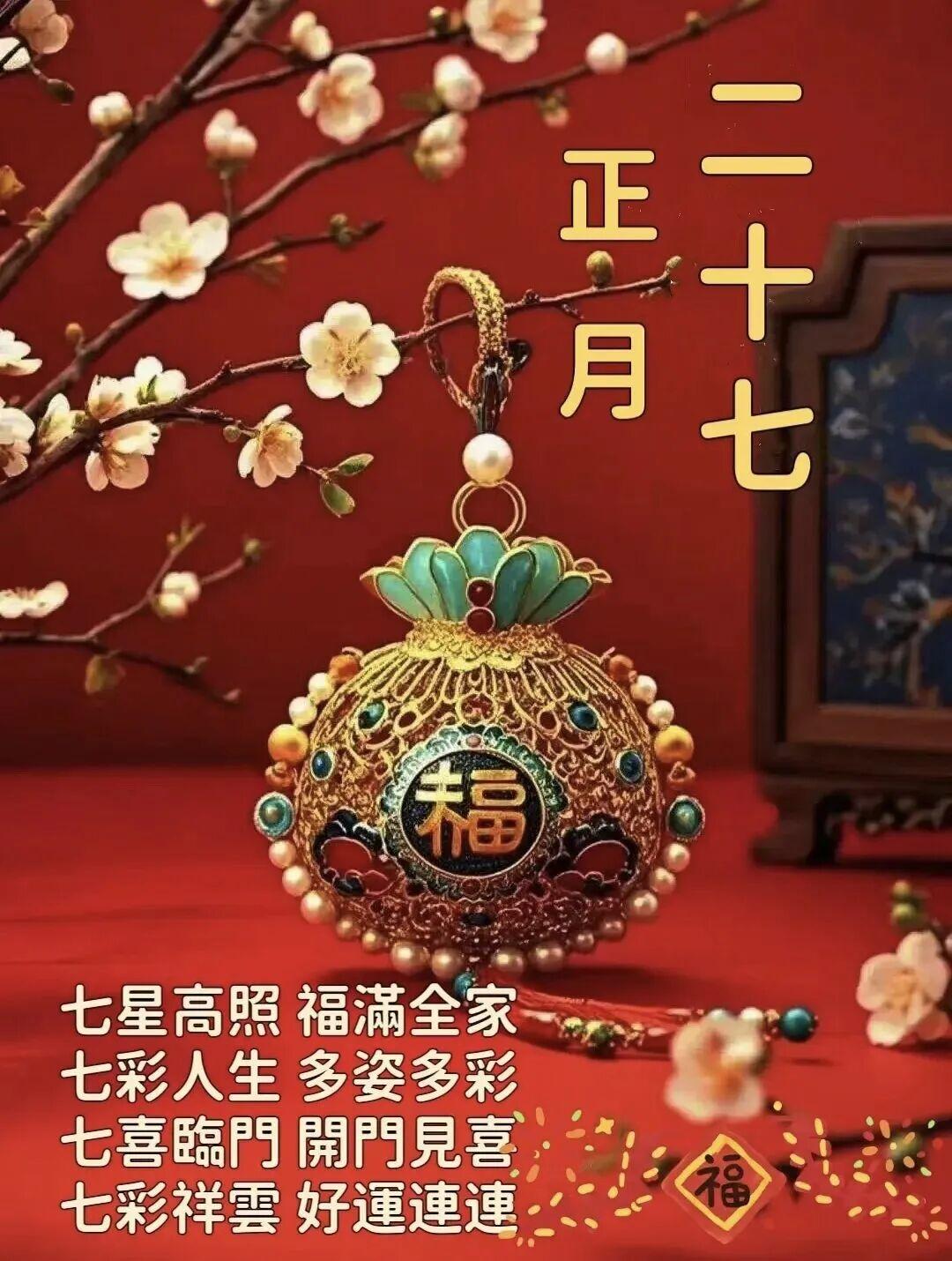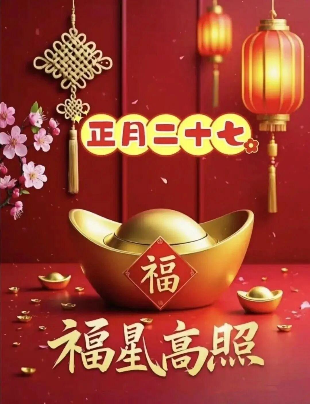正月二十七,早安!願新的一天如陽光般燦爛,身體健健康,心情快快樂,生活平平靜,事業揚眉吐氣。七星高照,萬事如意,福氣盈門,好運常在!