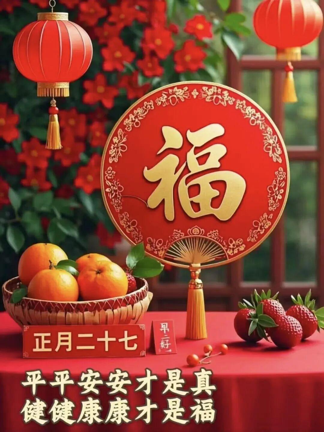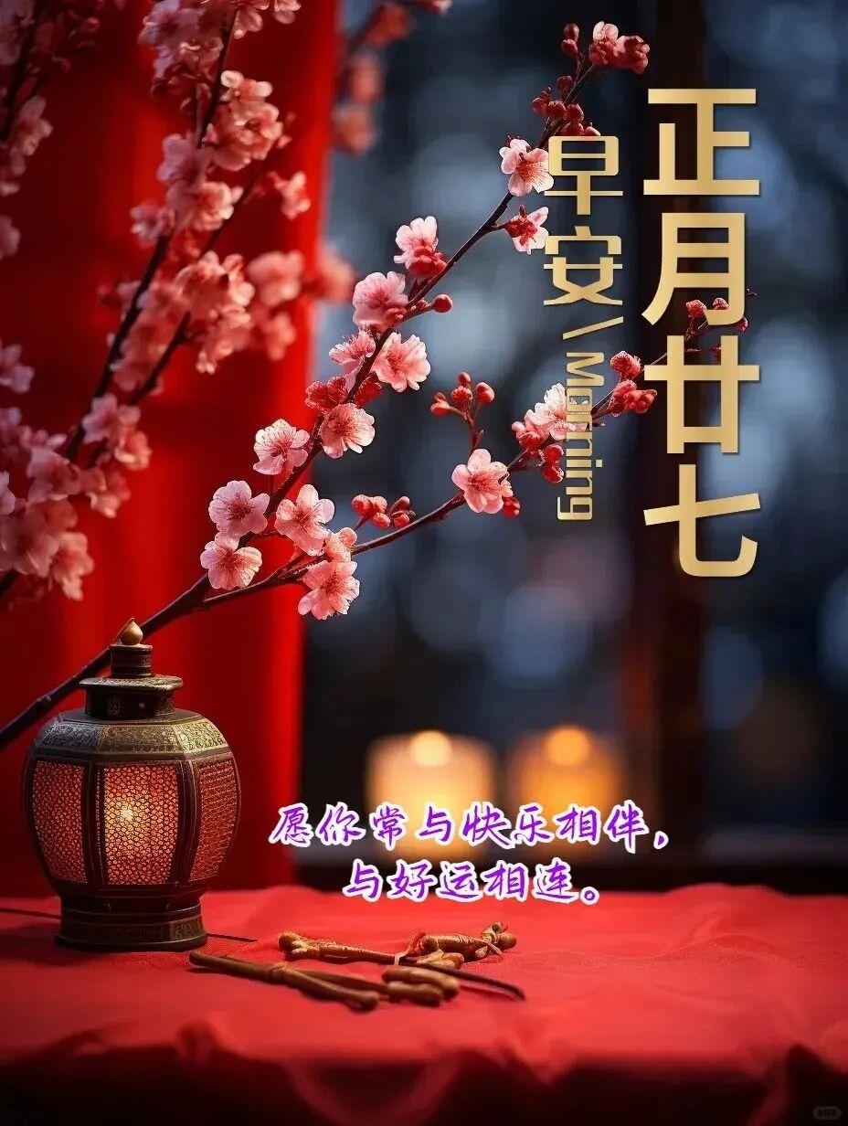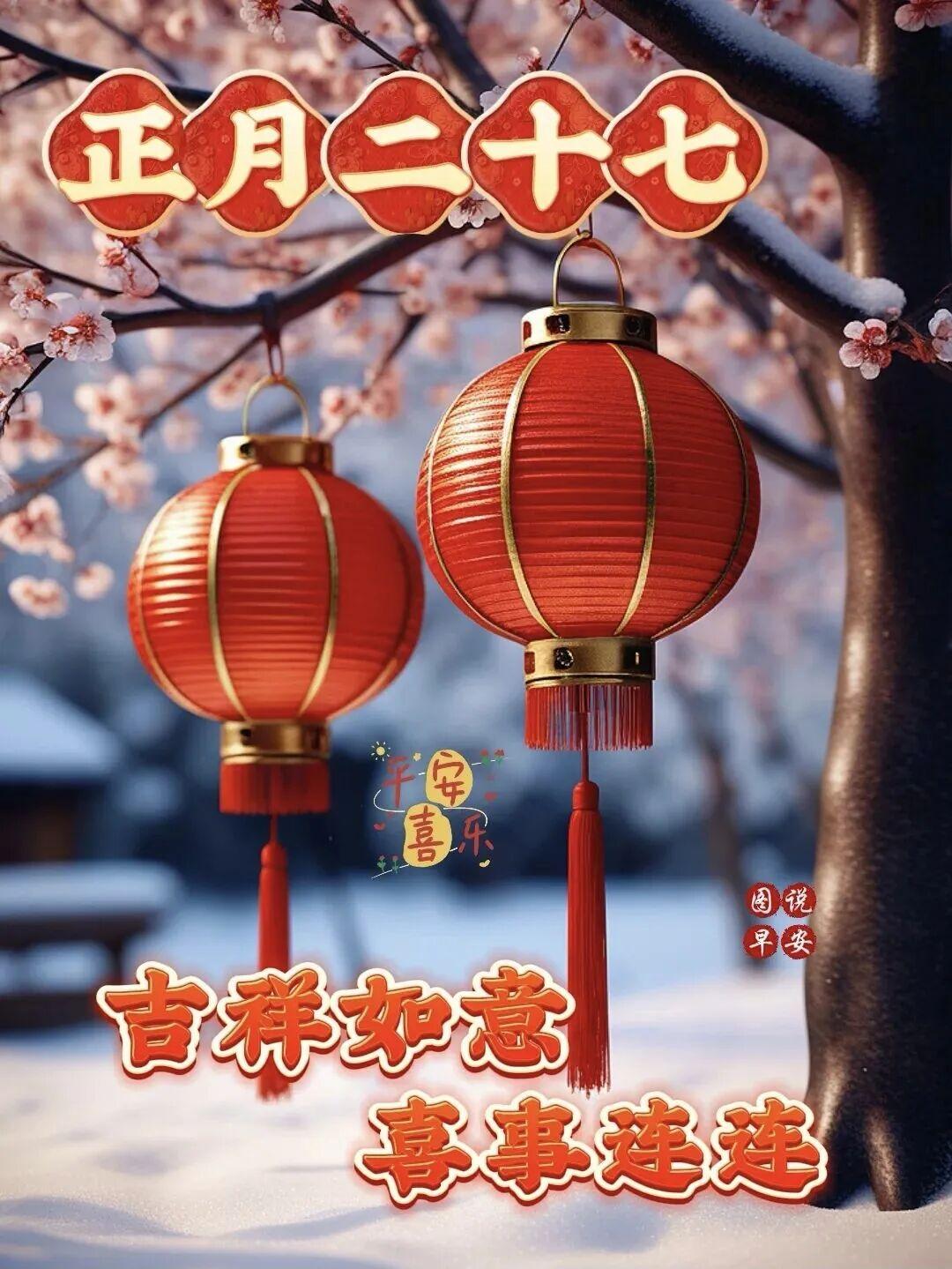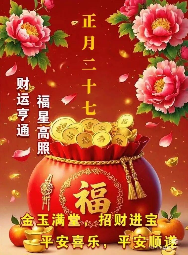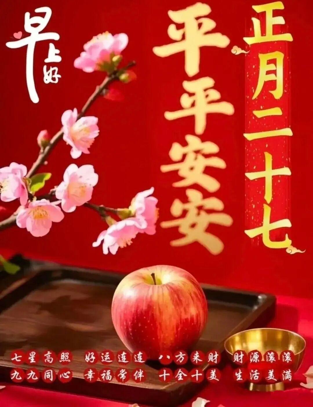 正月二十七,早安!願新的一天如陽光般燦爛,身體健健康,心情快快樂,生活平平靜,事業揚眉吐氣。七星高照,萬事如意,福氣盈門,好運常在!