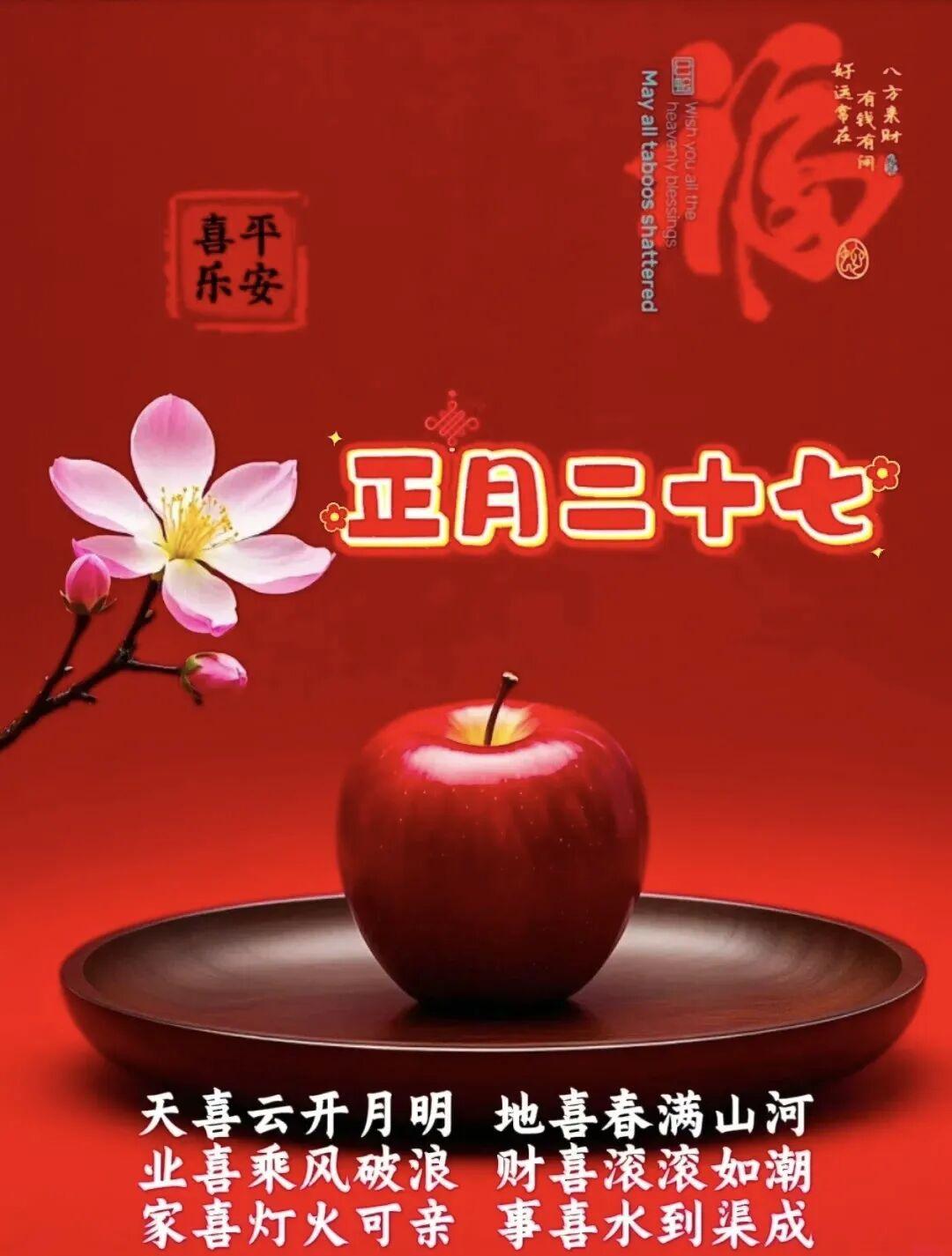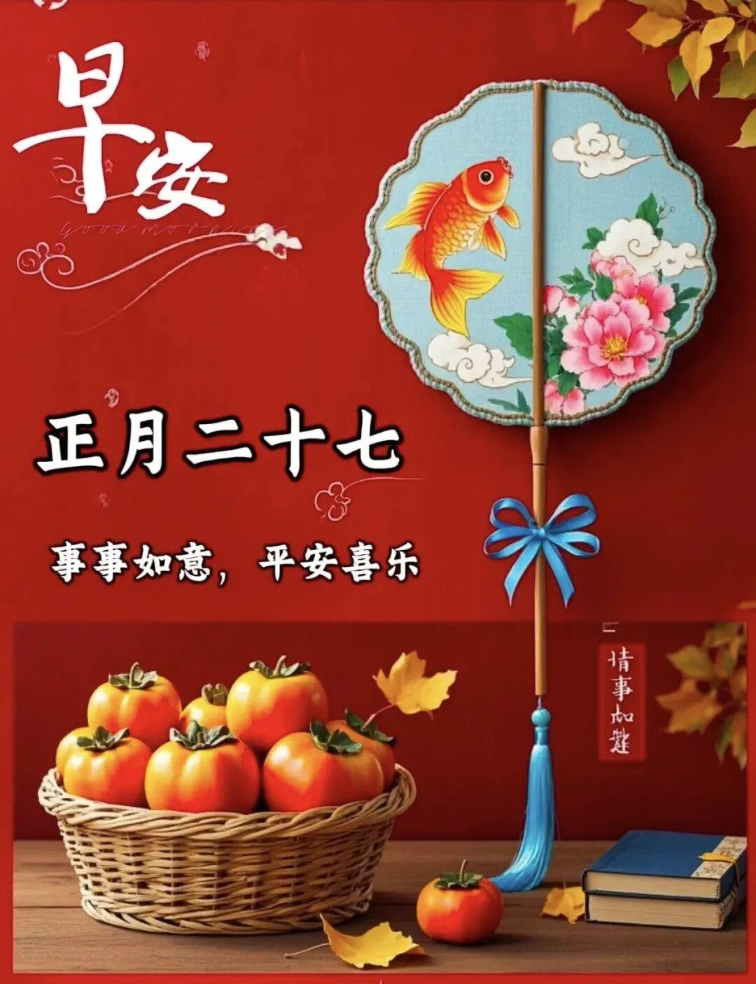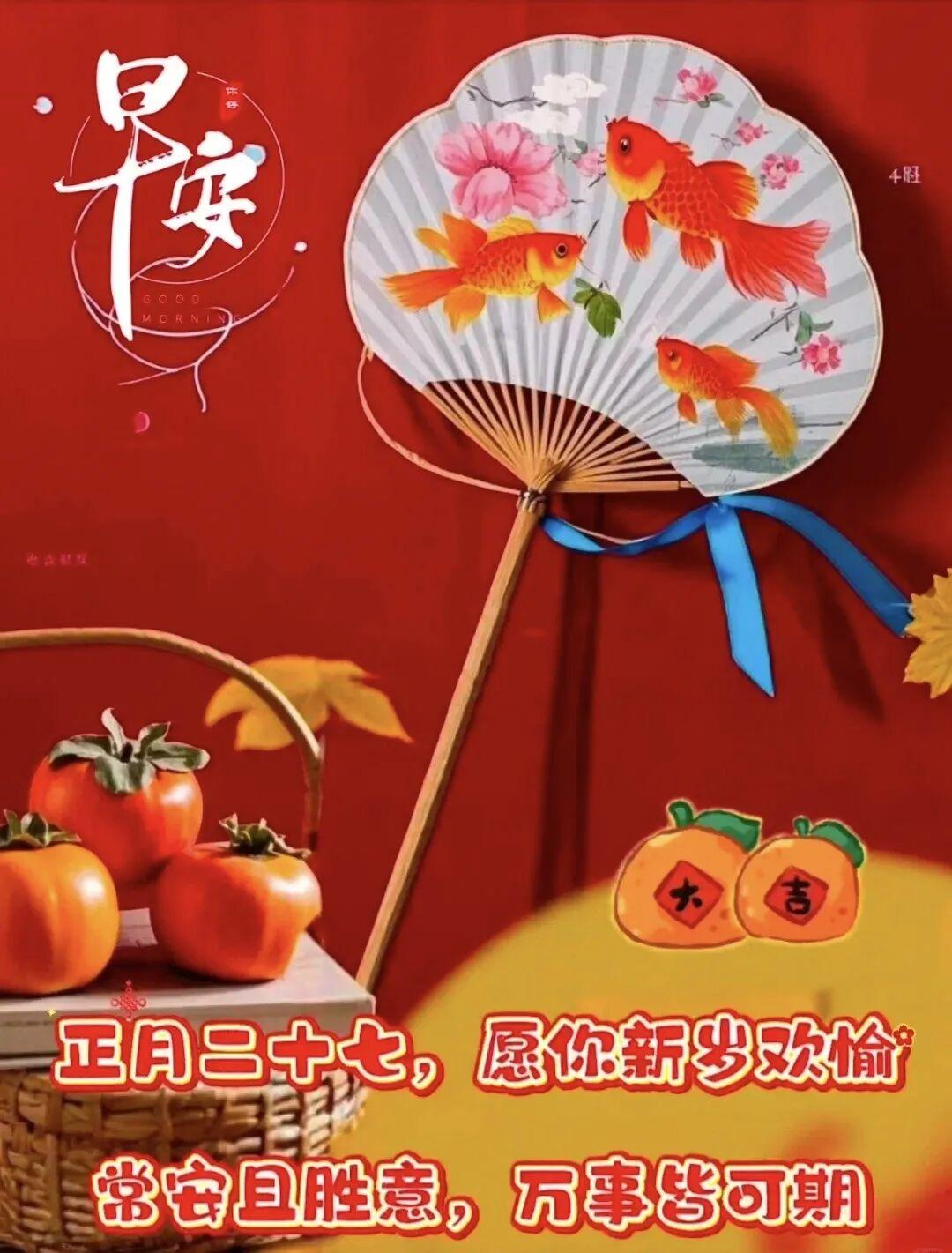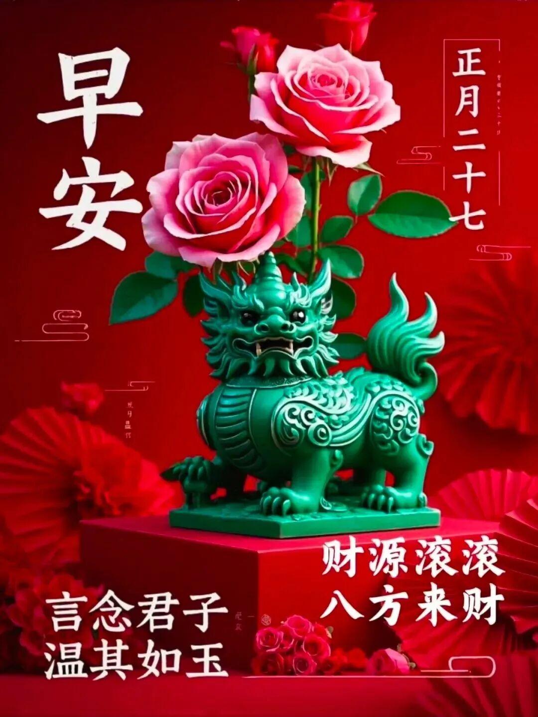 正月二十七,早安!願新的一天如陽光般燦爛,身體健健康,心情快快樂,生活平平靜,事業揚眉吐氣。七星高照,萬事如意,福氣盈門,好運常在!