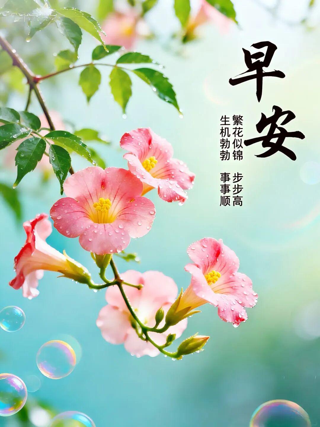 春暖花開,萬物復甦的季節,陽光正好,美了心情,醉了春天。 願你每天好運加滿,開心無限,順心如意! 生活春意盎然,心情春風得意!週一早安!願你體健筋骨舒,容光煥發踏曉霧;清晨問候寄真情,快意時光再起步;祝君歲歲年年安,年年歲歲樂無憂。
