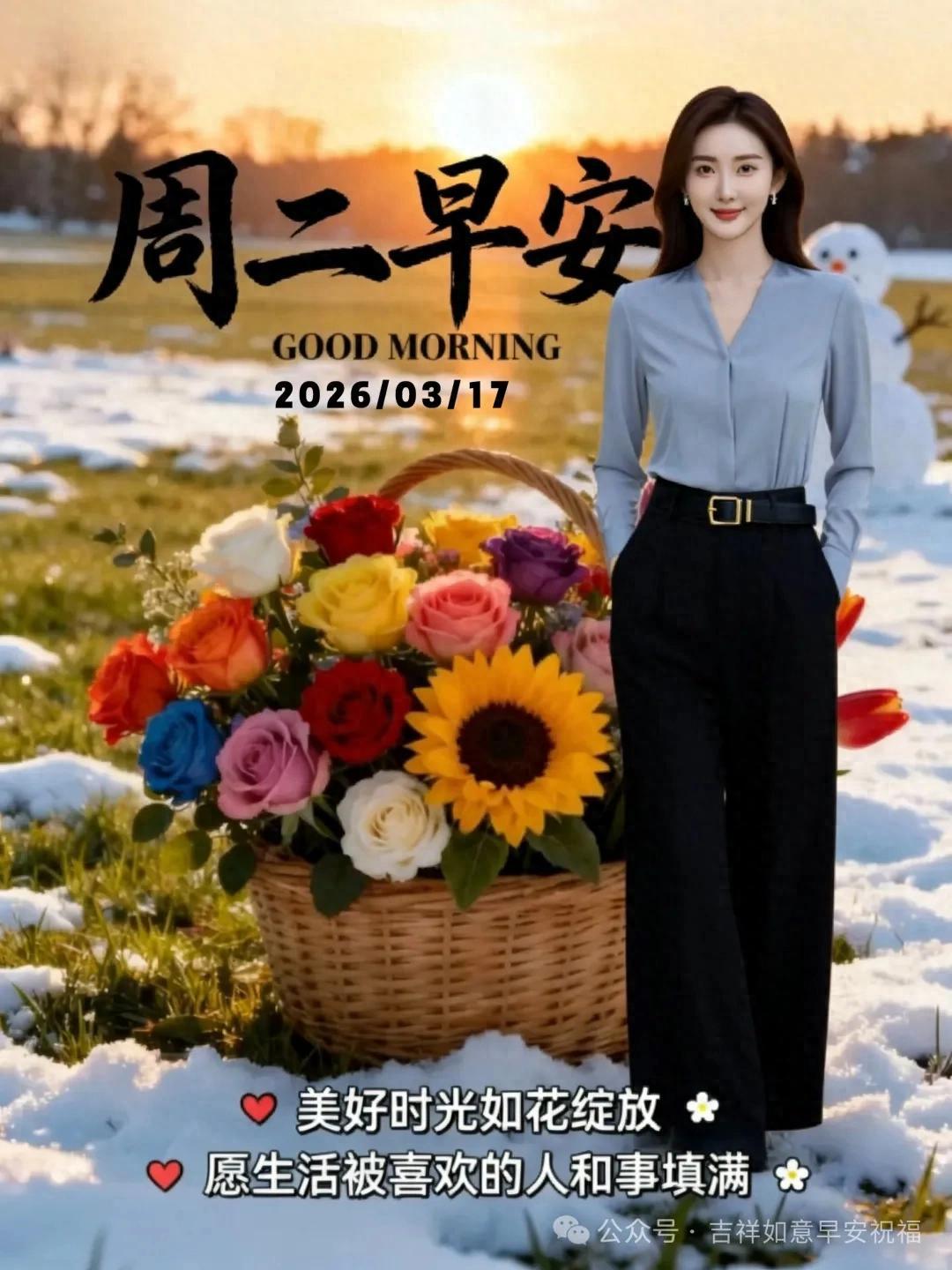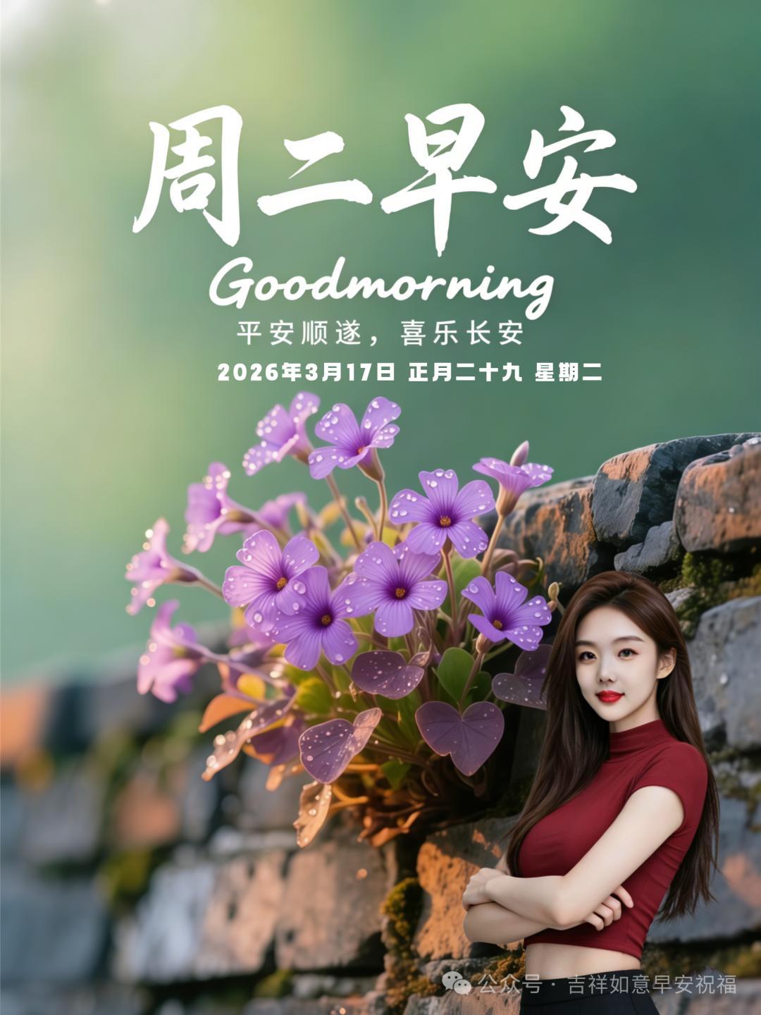 24張2026年3月17日正月二十九早安美圖帶日期,最新週二早上好