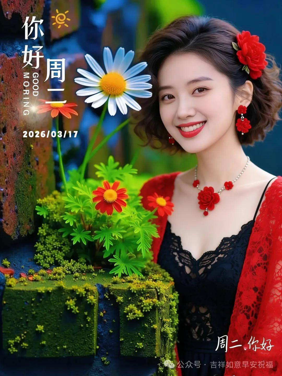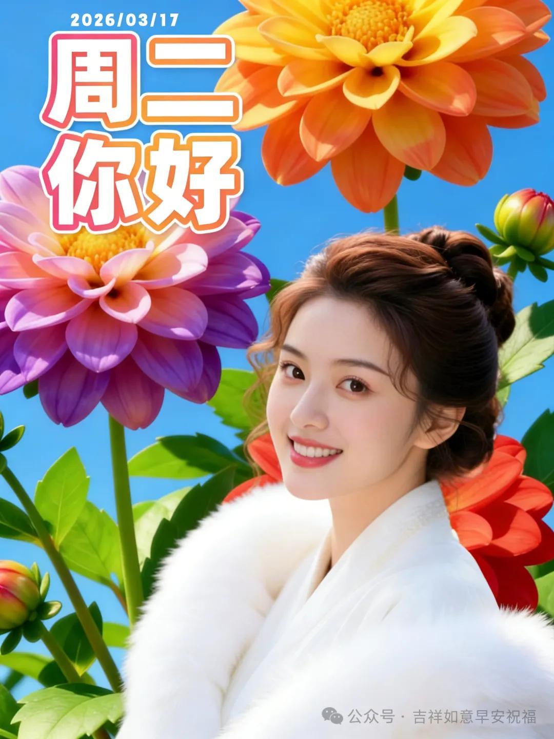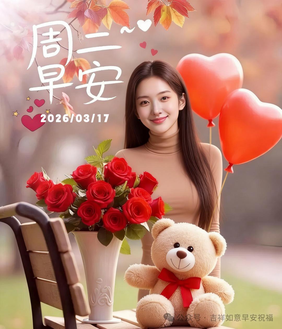 星期二 3月17日 超漂亮早上好美女 祝福美圖和文案