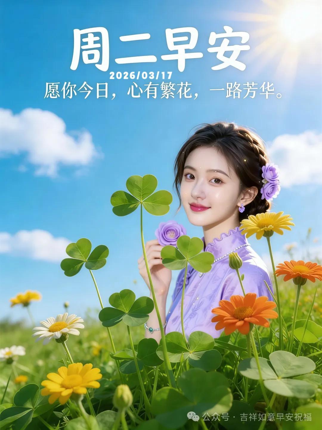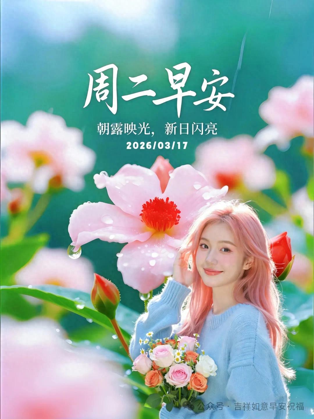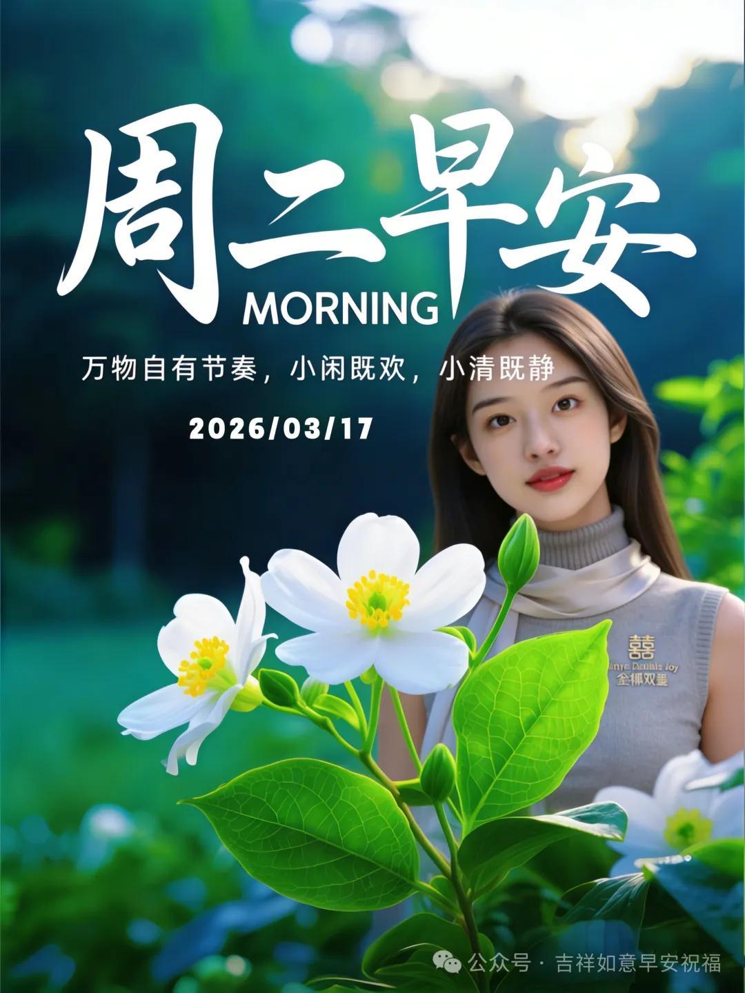 星期二 3月17日 超漂亮早上好美女 祝福美圖和文案