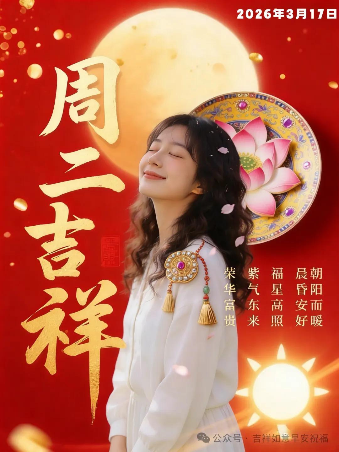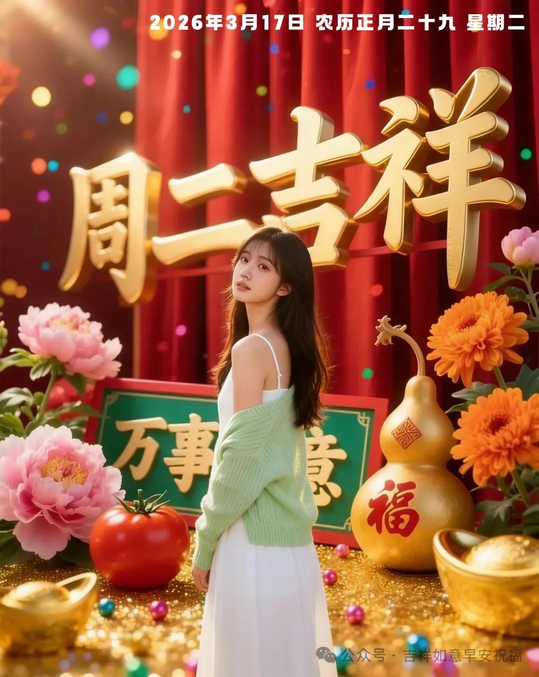 2026年3月17日 星期二 正月廿九 今日美女早安送祝福圖片配文案