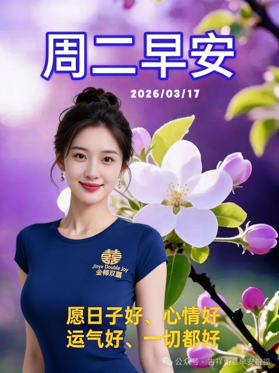 星期二 3月17日 超漂亮早上好美女 祝福美圖和文案