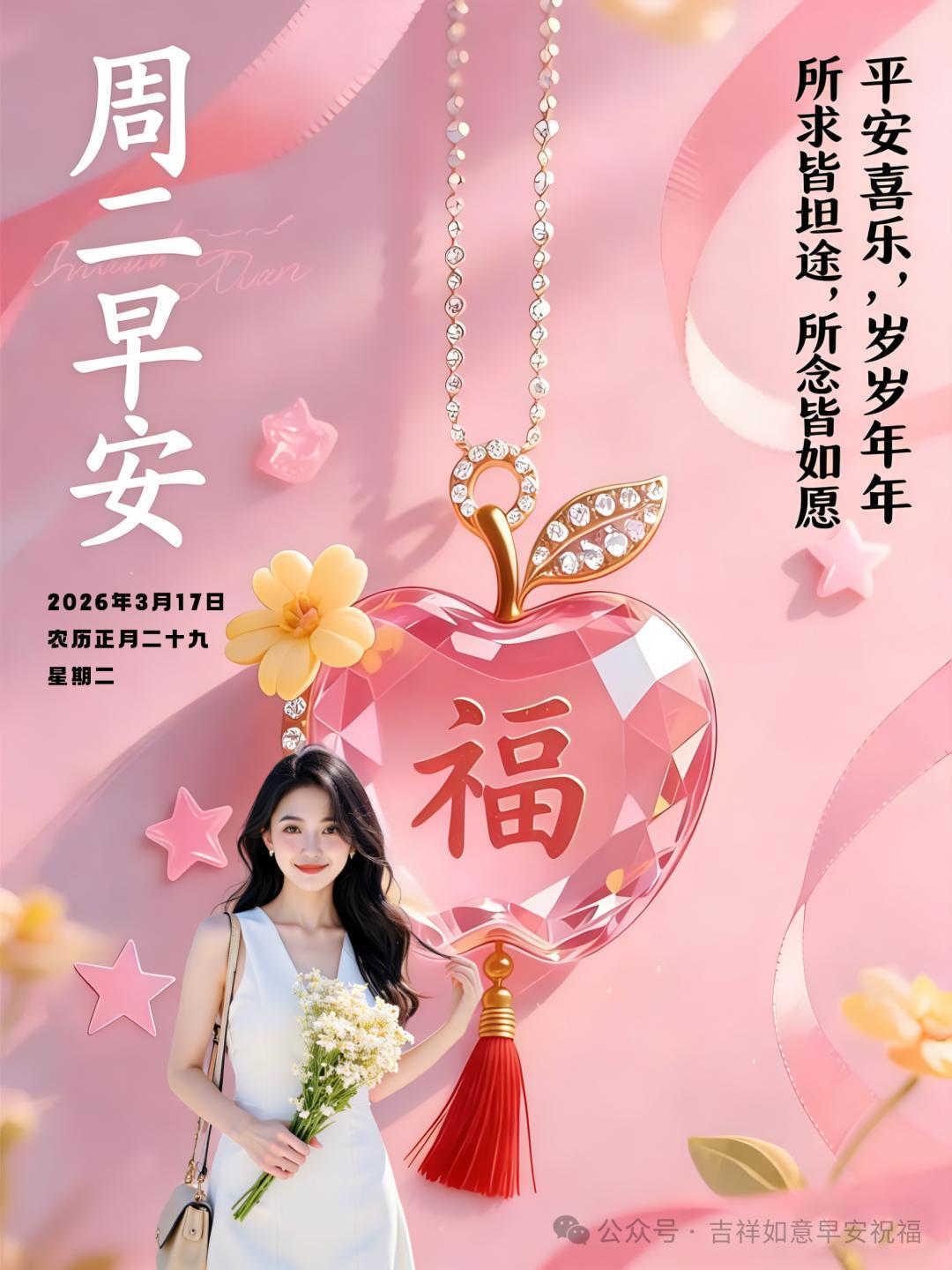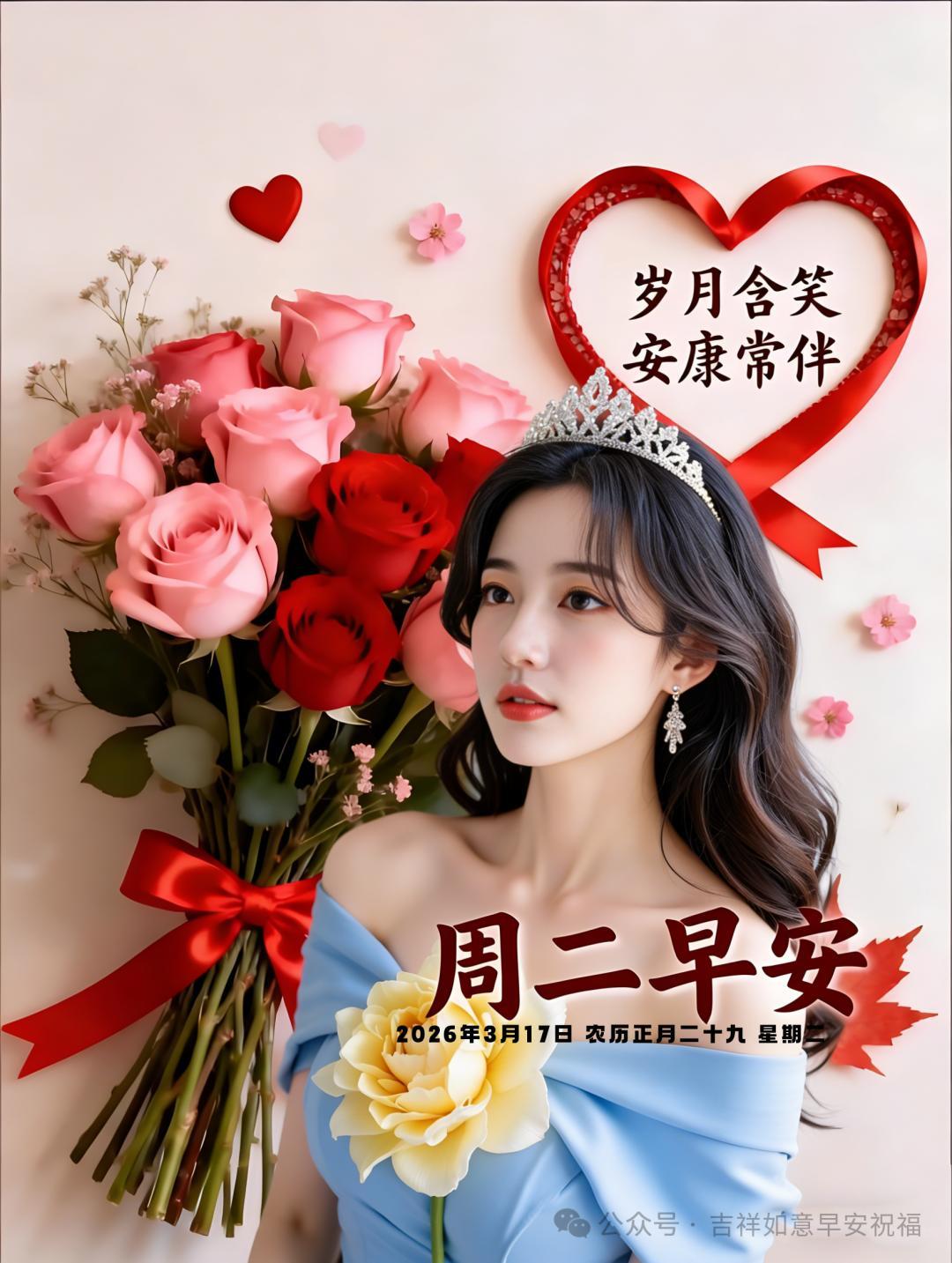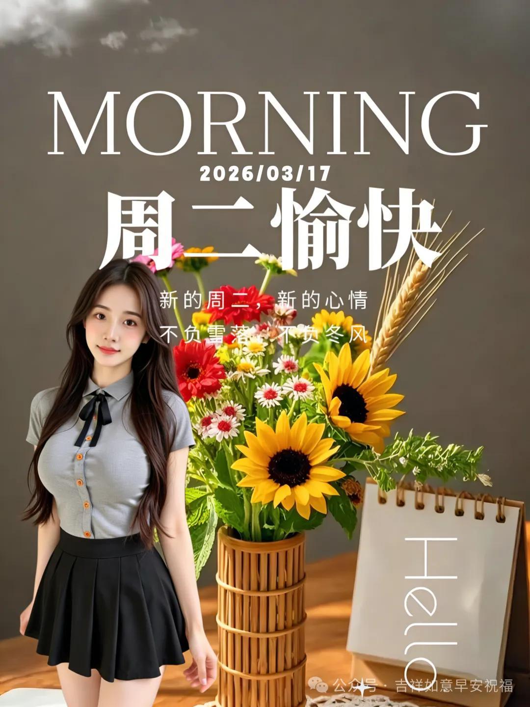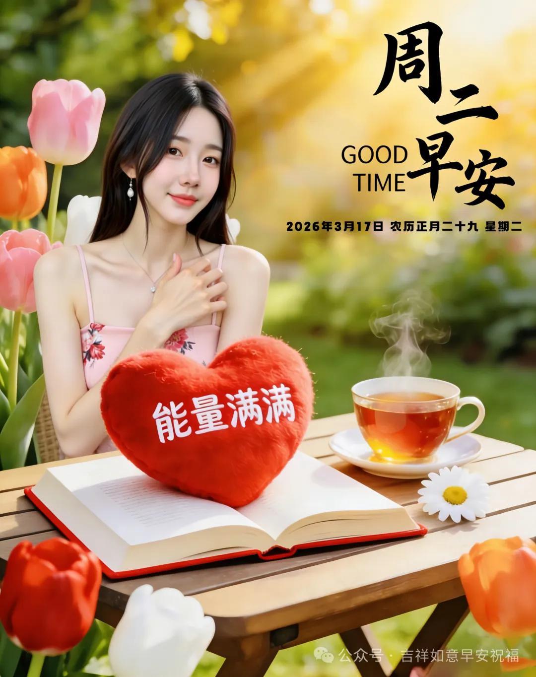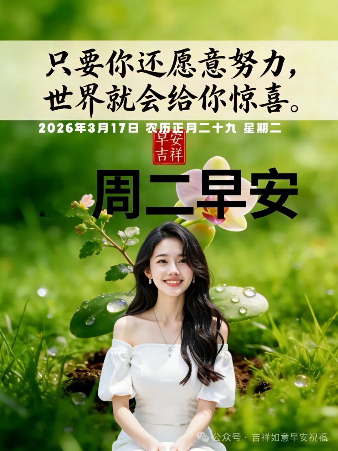 24張2026年3月17日正月二十九早安美圖帶日期,最新週二早上好