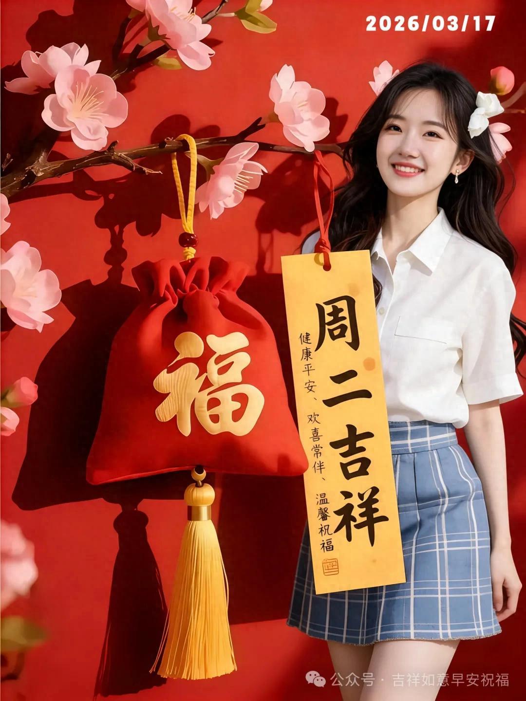 2026年3月17日 星期二 正月廿九 今日美女早安送祝福圖片配文案