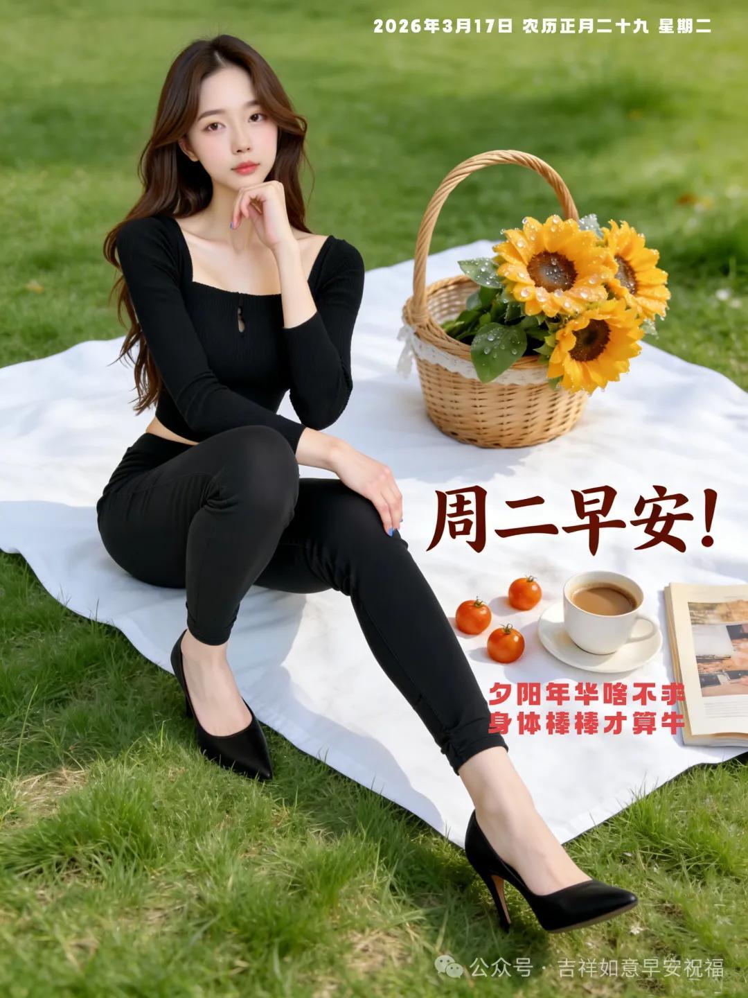 星期二 3月17日 超漂亮早上好美女 祝福美圖和文案