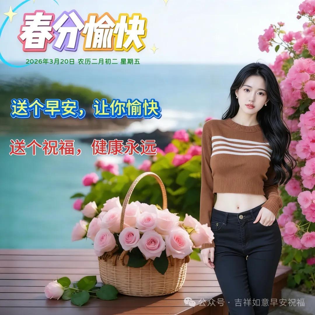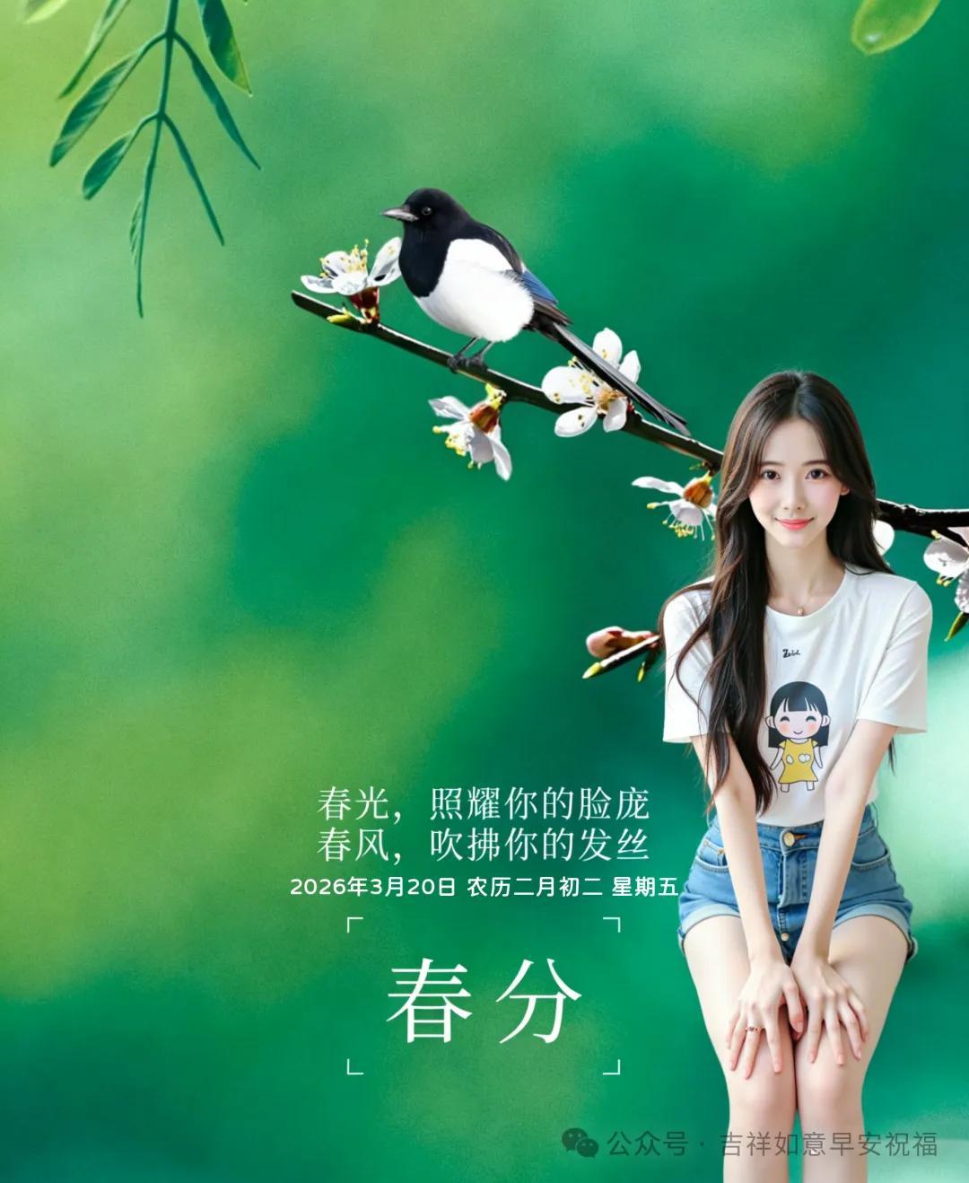 春分到來吉星照,好運連連笑開懷。朋友情深祝福長,❤️幸福美滿在心間。願你前程似錦,幸福美滿,身體健康,萬事如意,步步高昇。