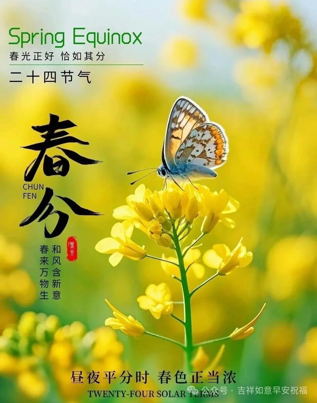 春色滿園送安康,方知你我情誼長;☀春分節氣春光暖,生活如意沐芬芳;送一抹清香,願日子舒心吉祥,☀贈一片春光,願天天喜樂明亮。