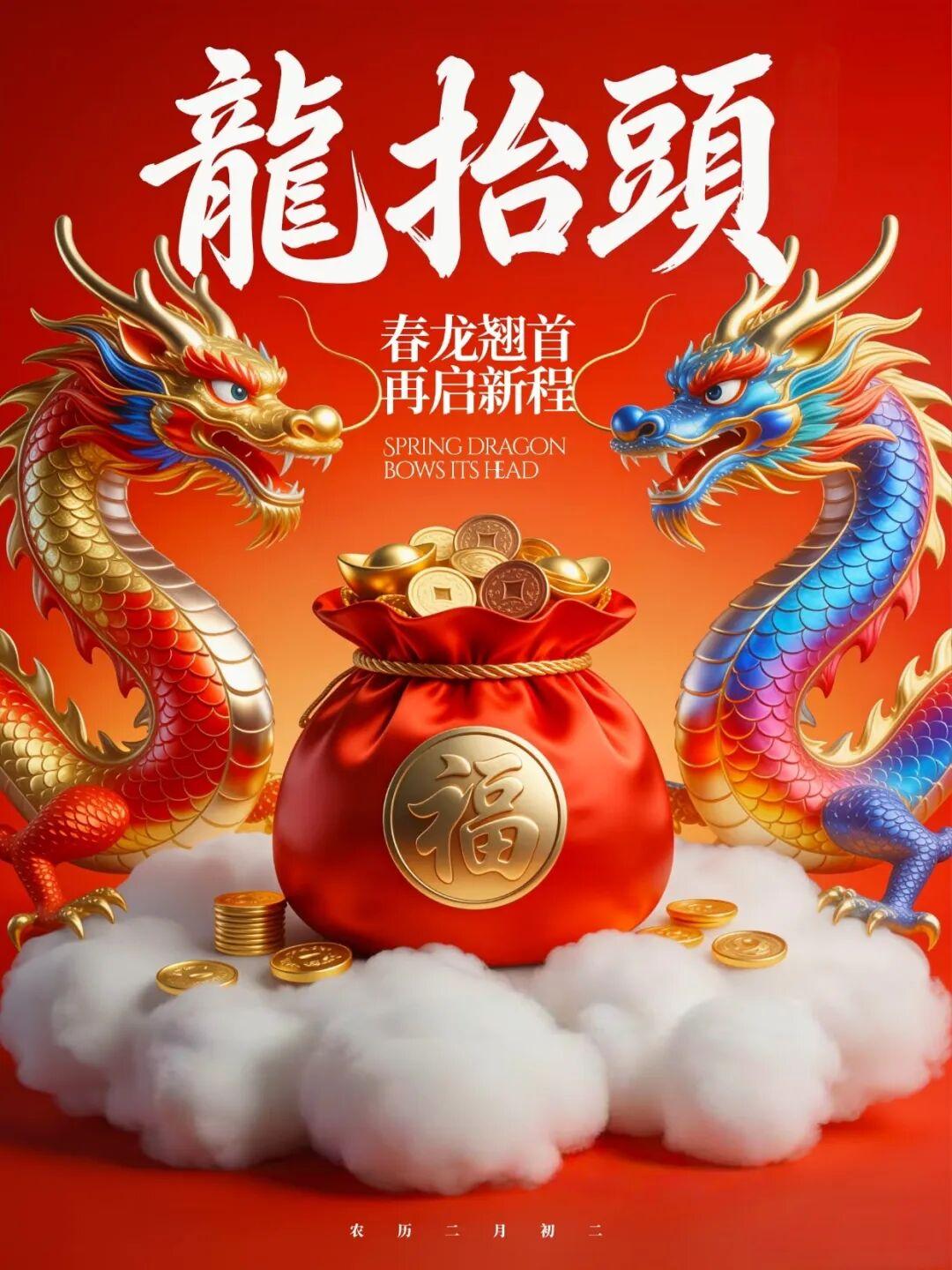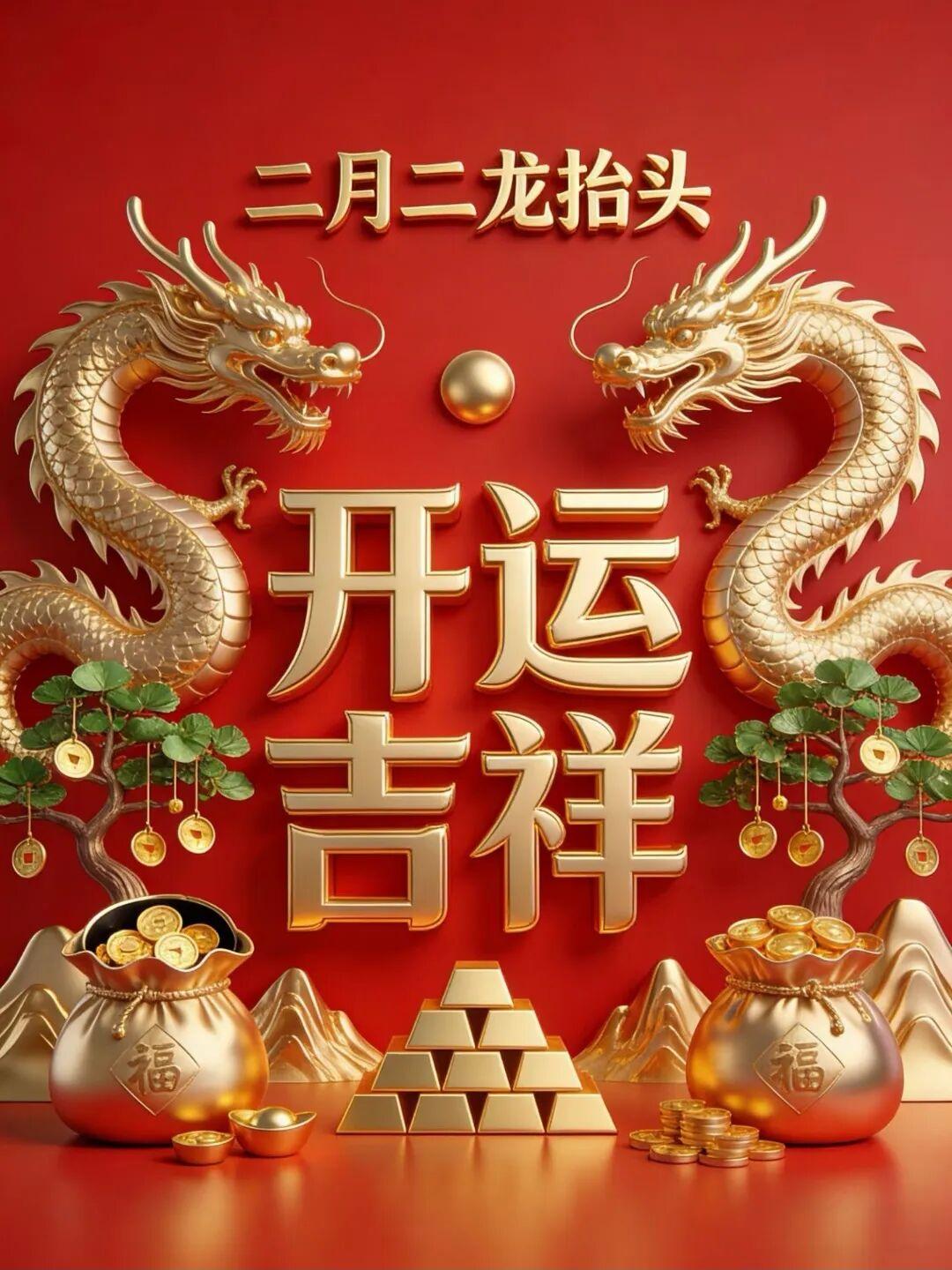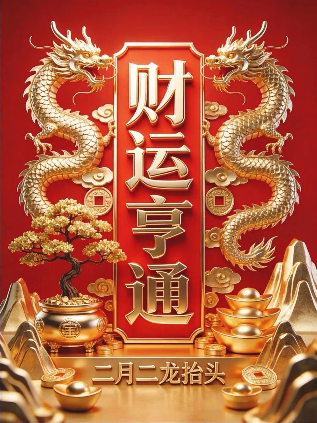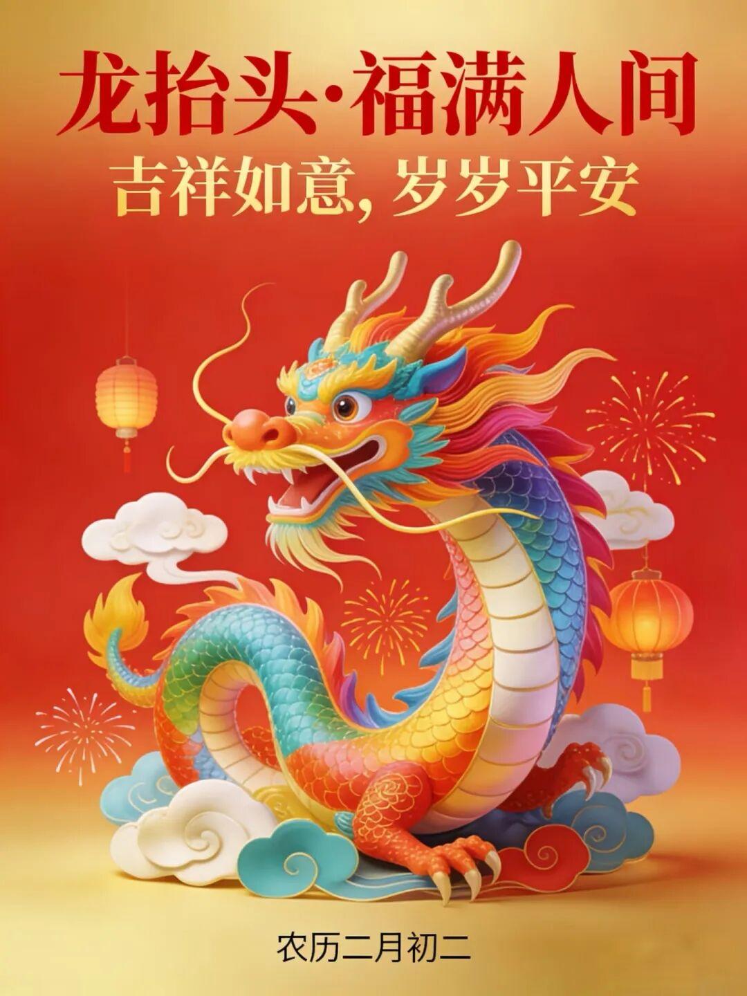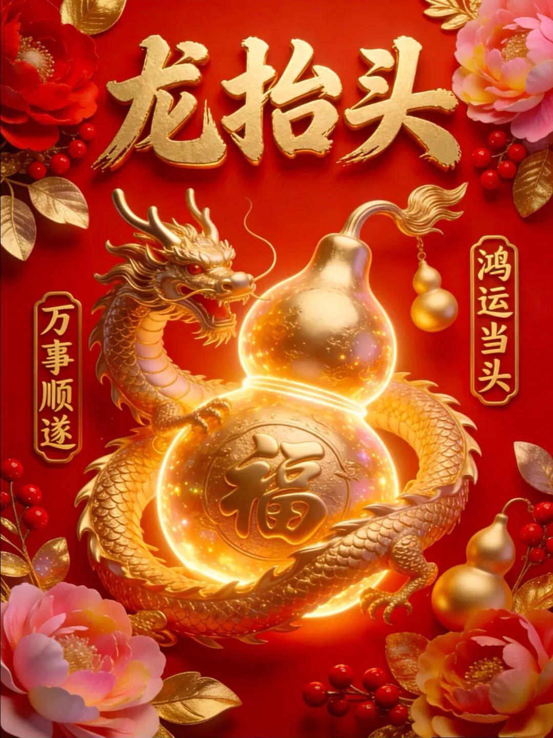 二月初二龍抬頭,願抬頭所見皆是希望!納祥轉運!祝願大家:幸福安康,馬年鴻運當頭!龍馬精神好彩頭,馬上走運,馬上財旺福旺運氣旺!