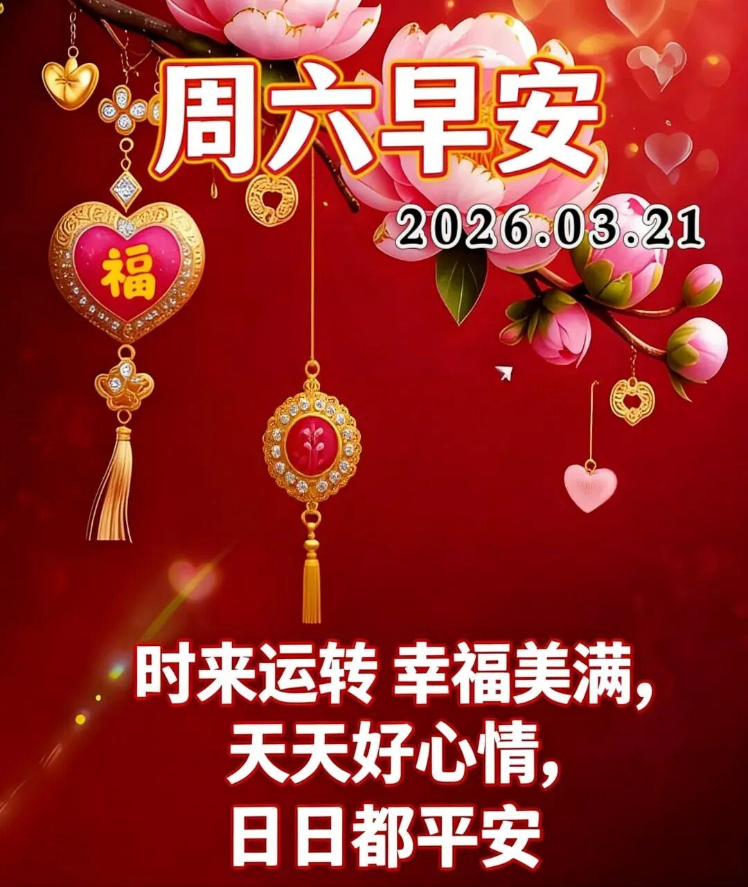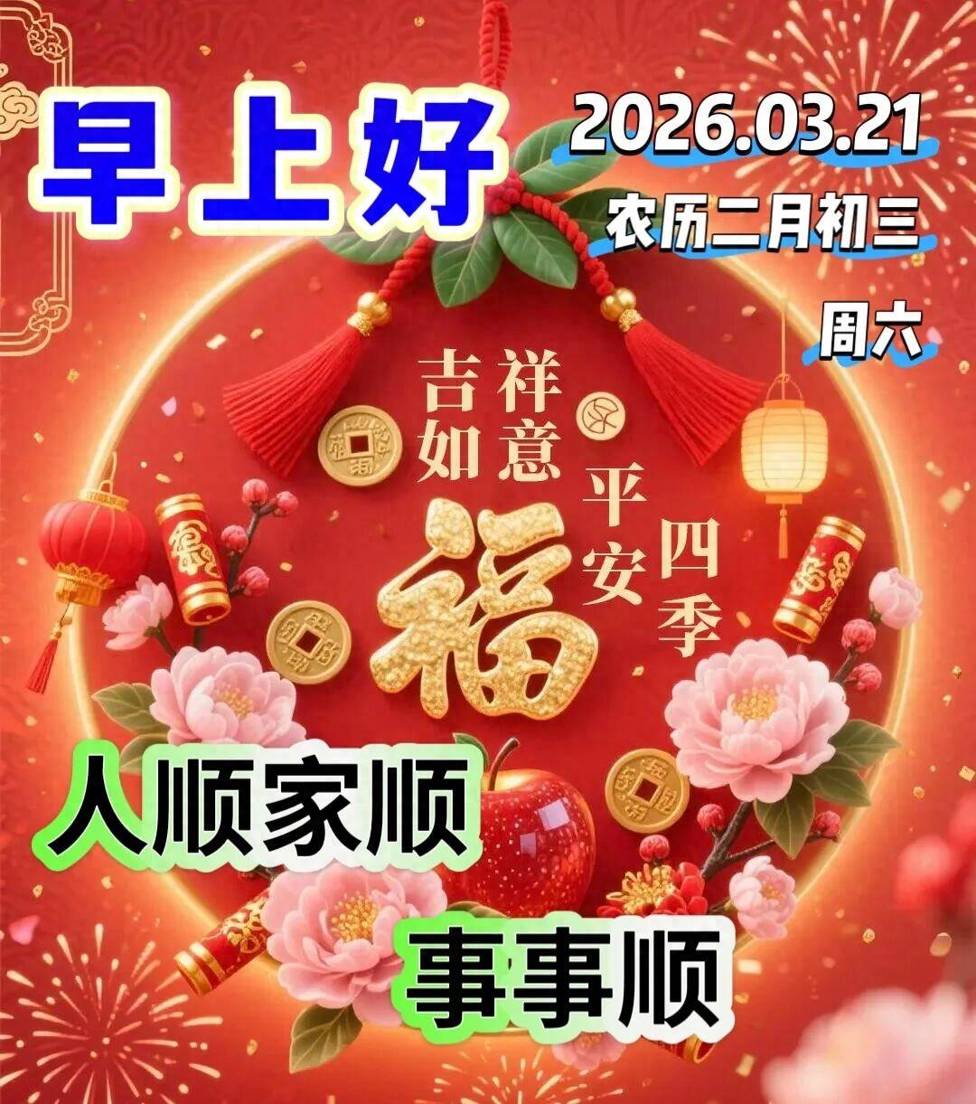 2026年3月21日農曆二月初三早上好,週六週末春天早安問候祝福語